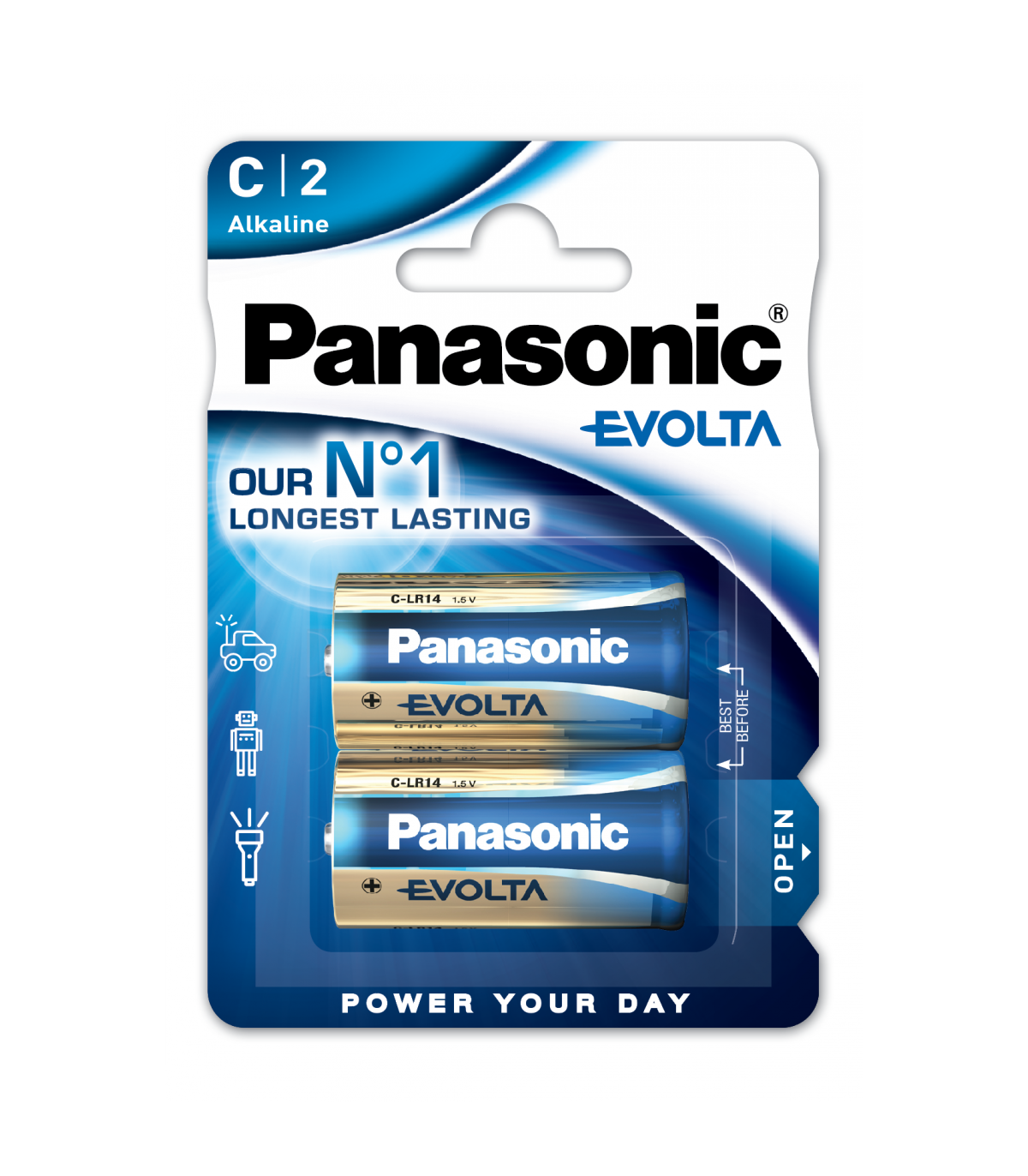Lot de 2 piles Alkaline C LR14 Panasonic Evolta