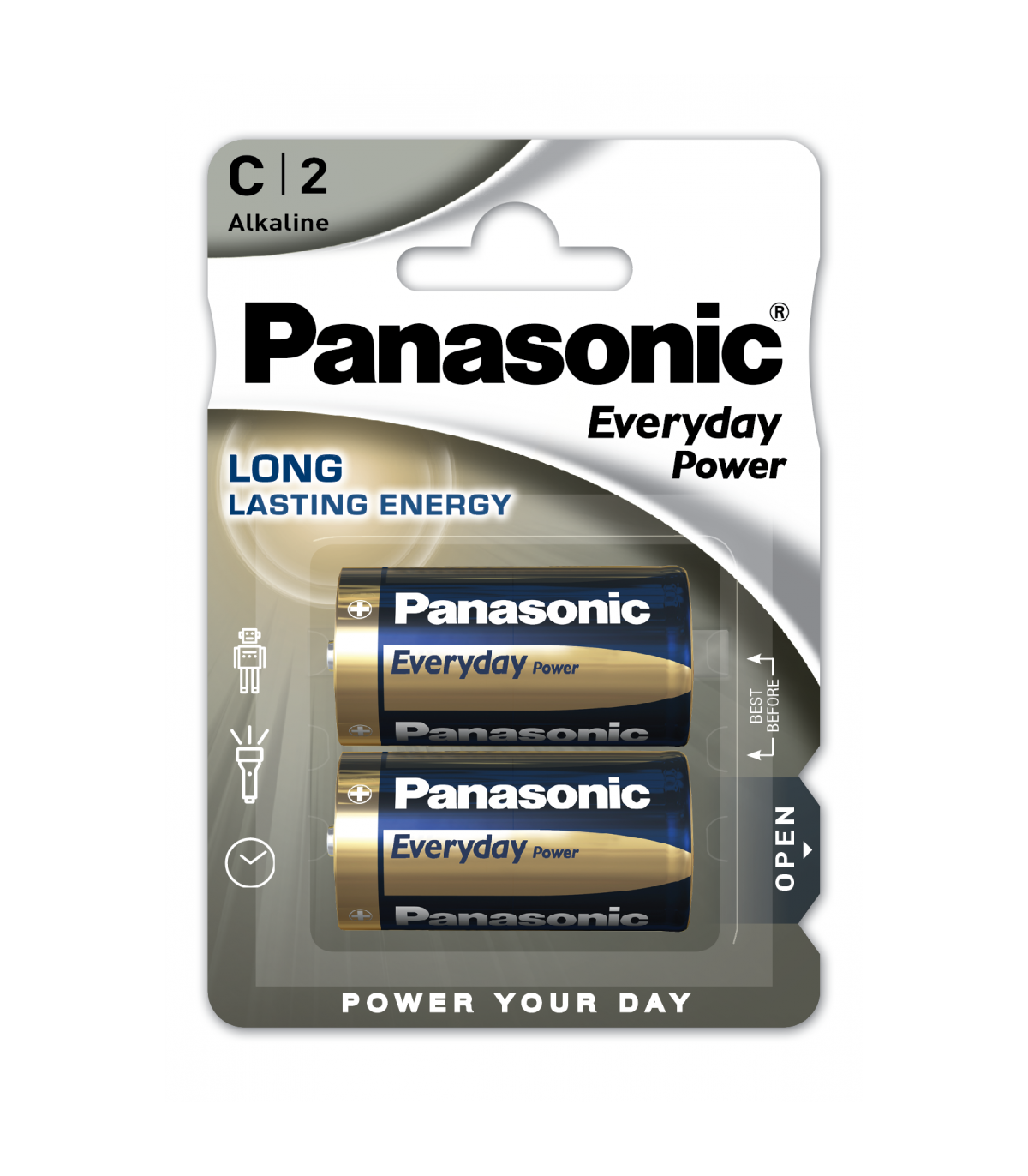 Lot de 2 piles Alkaline C LR14 Panasonic Everyday Power.