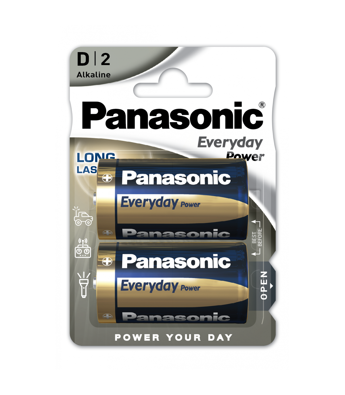 Lot de 2 piles Alkaline D LR20 Panasonic Everyday Power.