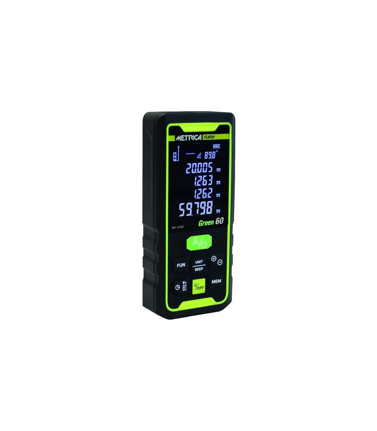 Le METRICA Télémètre Laser FLASH Green 60 M est conçu pour les professionnels et les bricoleurs qui recherchent précision, efficacité et simplicité. Son pointeur laser vert offre une visibilité renforcée, même sur des murs sombres ou éloignés. Compact et polyvalent, il est l’outil idéal pour vos travaux de mesure en intérieur comme en extérieur.