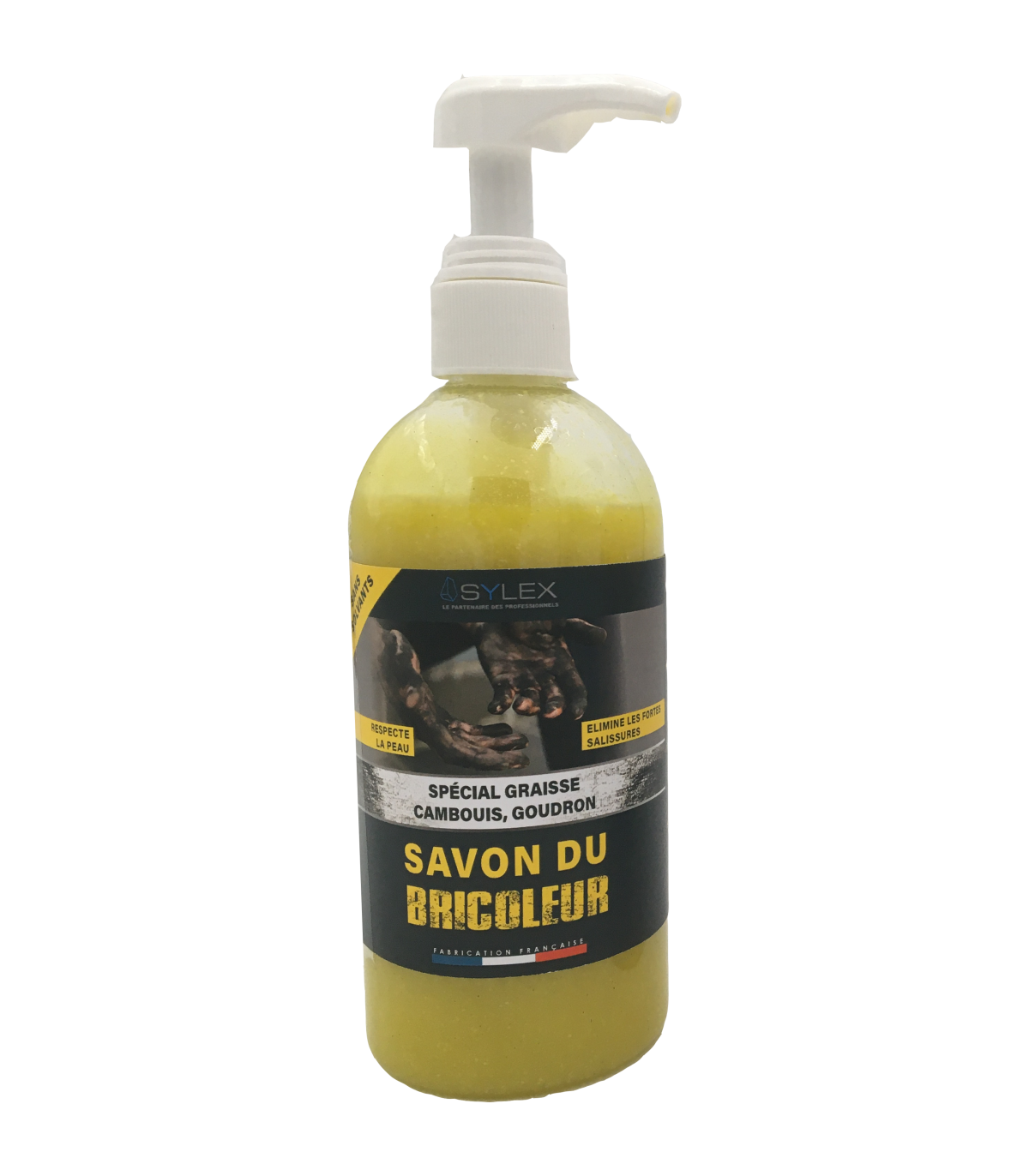 Le savon du bricoleur Sylex est un gel abrasif 100% d'origine naturelle (cellulose, pierre ponce) pour un nettoyage des mains en profondeur et fortement souillées par les graisses, le cambouis, le goudron, la poussière de freins... Sa formule est enrichie en actifs hydratants (glycérine et aloé vera) pour un meilleur respect de l'épiderme. Sans solvant pétrolier ou végétal.