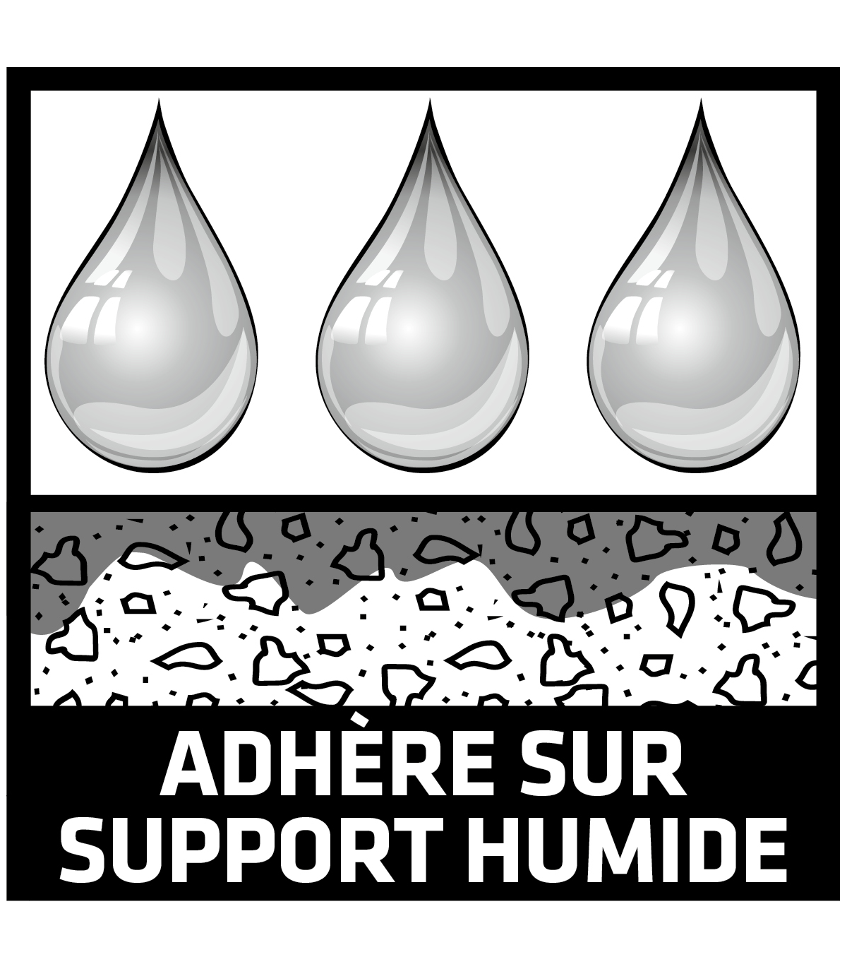 Oui, il adhère sur supports légèrement humides et reste efficace même sous pluie légère.