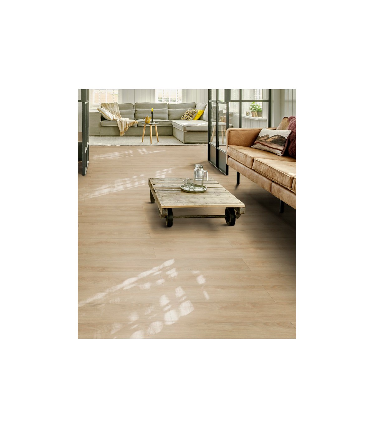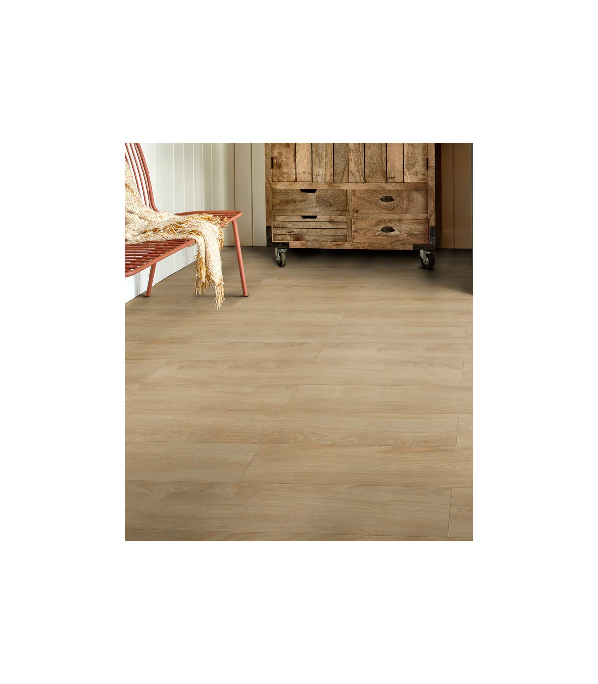 Ce sol en dalle PVC mesure 132 X 19,6 cm pour une épaisseur totale de 2,35 mm avec une couche d’usure de 0,40 mm ; ce qui le rend résistant et durable. Il est équipé d’une rainure en V sur les quatre faces de chaque dalle, ce qui confère au sol un aspect encore plus naturel.