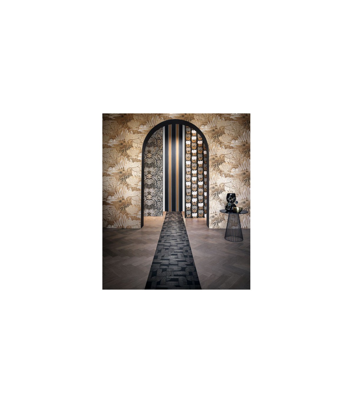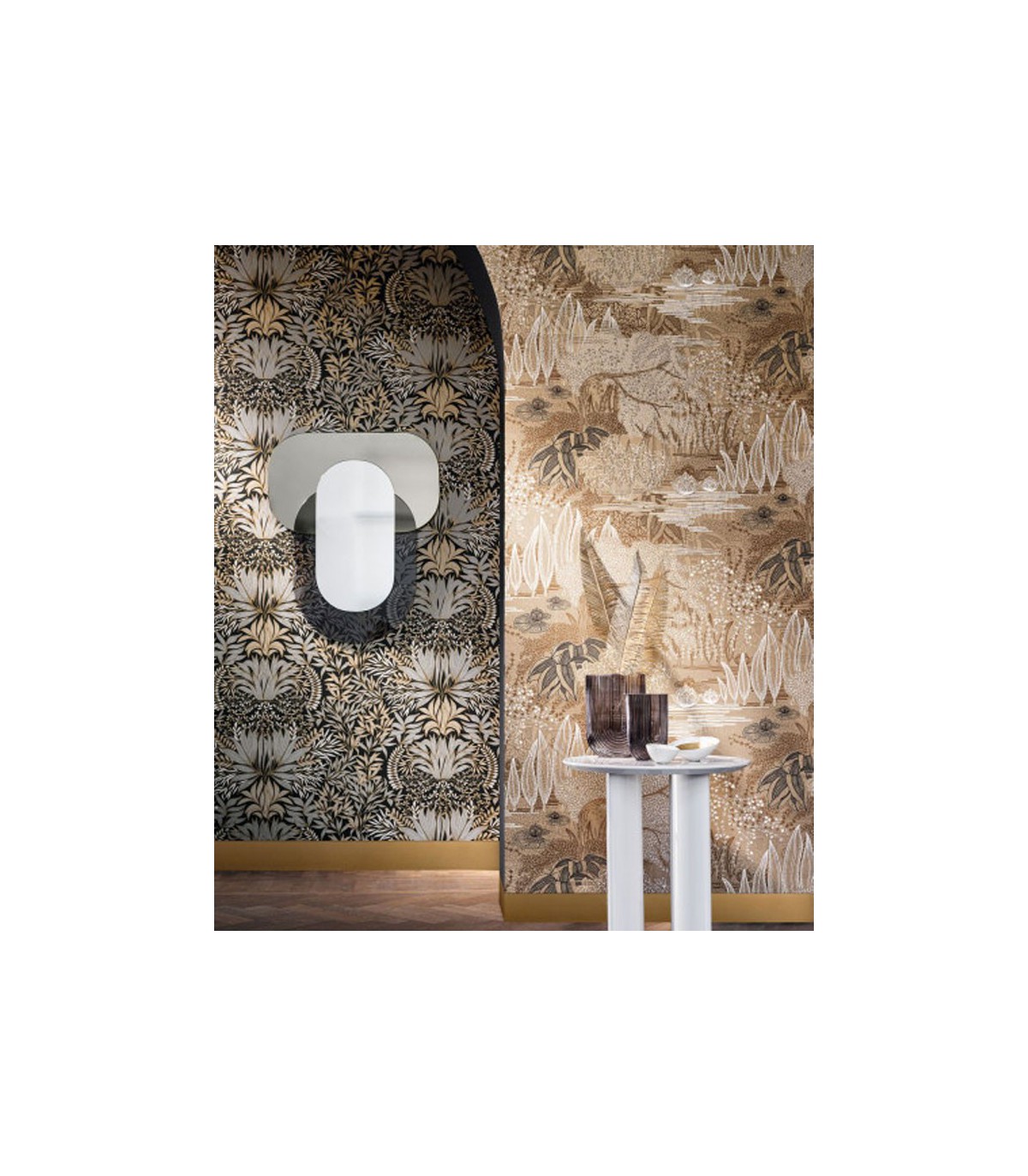 Papier Peint Intissé Chardon Blanc/ Doré – Square Jasmin de Casamance - réf. 75733160