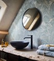 Sur un papier texturé à l’aspect fibreux, Marée haute trace à l’encre sablée l’inépuisable ressac de la mer. Immédiatement, une sensation de sel sur les lèvres et de vent dans les cheveux nous submerge. Dans cette puissante évocation de l’océan, les flots prennent des accents parfois mats, parfois métallisés, et l’écume se traduit en points délicats. Proposées en 5 coloris, les vagues s’inscrivent à l’encre sablée dorée sur fond émeraude et blanc ; et à l’encre sablée blanche sur fond bleu, ocre et vert d’eau.