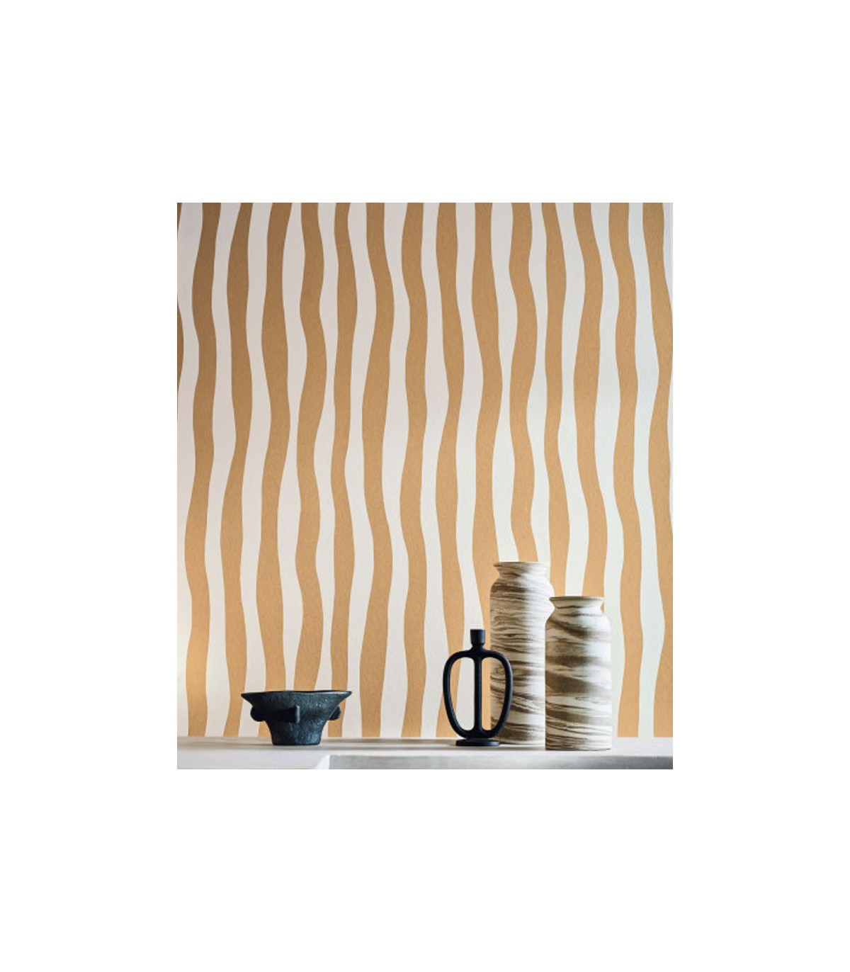 Spontanéité et fantaisie émanent d’une succession de rayures ondulantes. Elles semblent emprunter les chemins de traverse, épousant les lignes sinueuses du bord de mer et évoquant la fraîcheur des délicieuses crèmes glacées. Réalisées par notre bureau de style sur un papier à l’aspect fibreux, ces rayures sont déclinées en une palette de 7 teintes lumineuses.