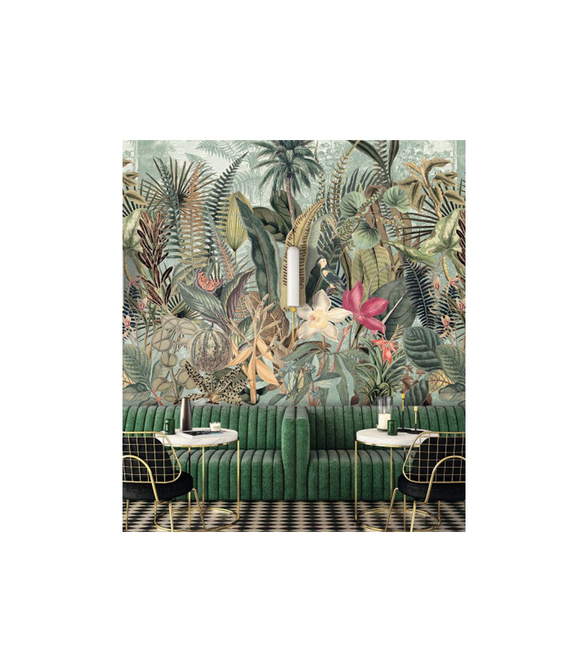 Papier Peint Panoramique Vinyle sur Intissé Daintree Bleu Marine/ Vert Mousse – Panoramas 2 de Casamance - réf. 75662036 - 272 x
