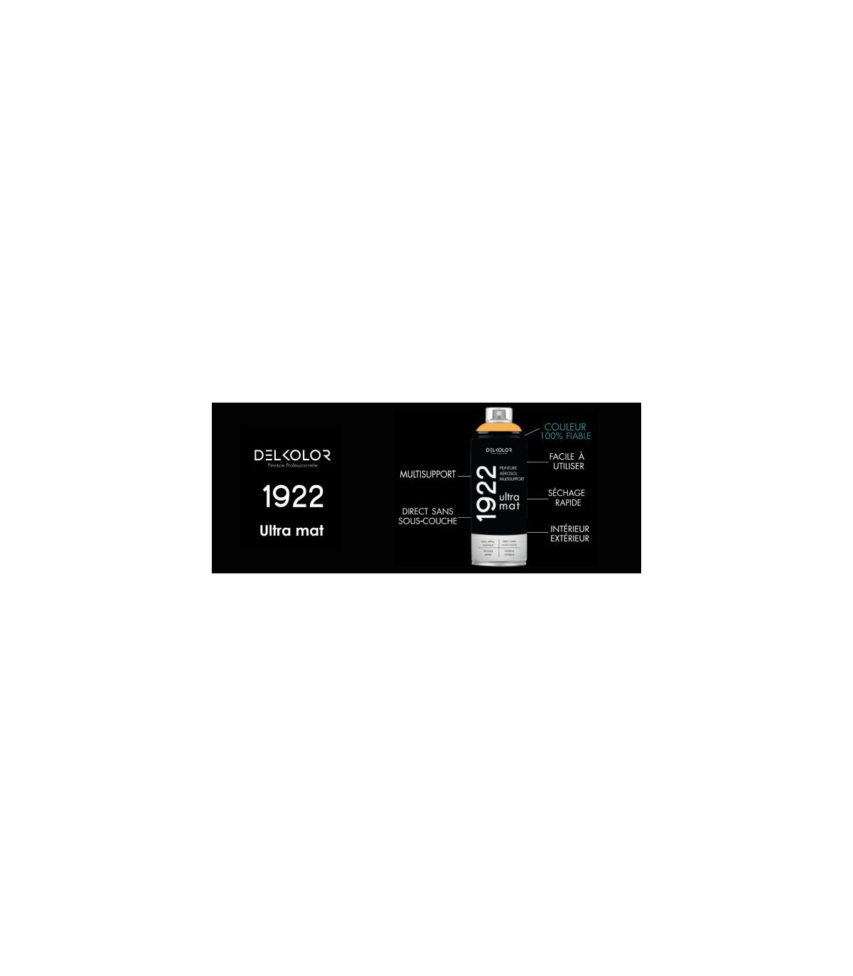 La nouvelle bombe de peinture 1922 de DELKOLOR, c'est une peinture multisupport en aérosol de 400ml, véritable concentré des innovations produits qui ont fait la renommée de la marque depuis sa création, il y’a 100 ans. De qualité supérieure, la peinture de l’aérosol 1922 se caractérise par un aspect ultra mat pour un effet ultra déco !