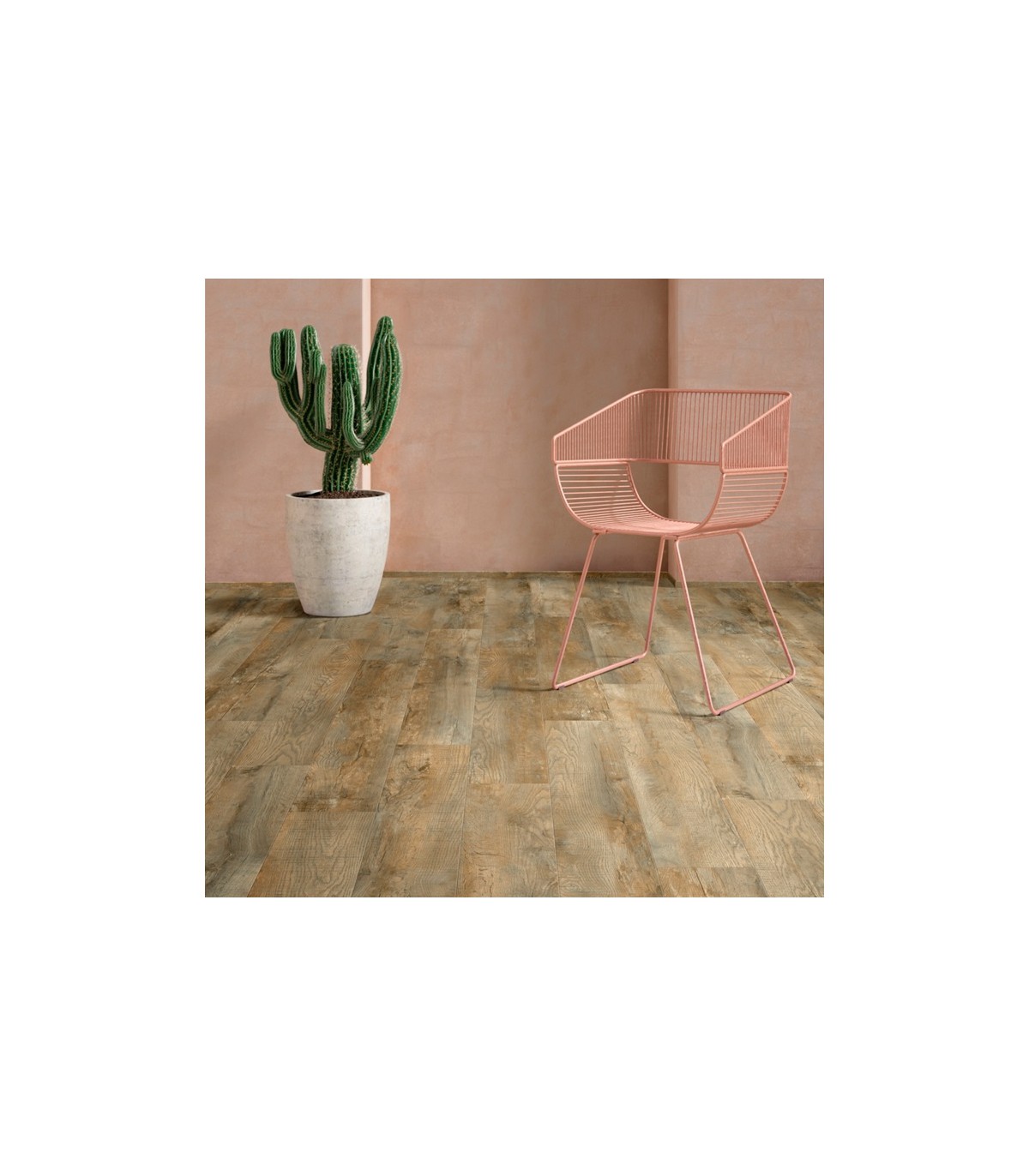 Ce sol en dalle PVC mesure 132 cm X 19,6 cm pour une épaisseur totale de 2,35 mm avec une couche d’usure de 0,40 mm ; ce qui le rend résistant et durable. Il est équipé d’une rainure en V sur les quatre faces de chaque dalle, ce qui confère au sol un aspect encore plus naturel.