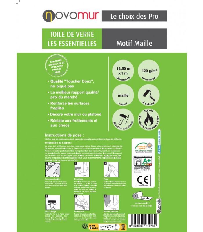 - Facile à Appliquer : Grâce à sa structure légère et à sa conception facile à manipuler, la toile de verre à peindre Novomur peut être installée sans tracas, même par les utilisateurs novices. Fini les tracas liés à la préparation des murs, cette toile de verre se pose aisément pour un résultat professionnel.