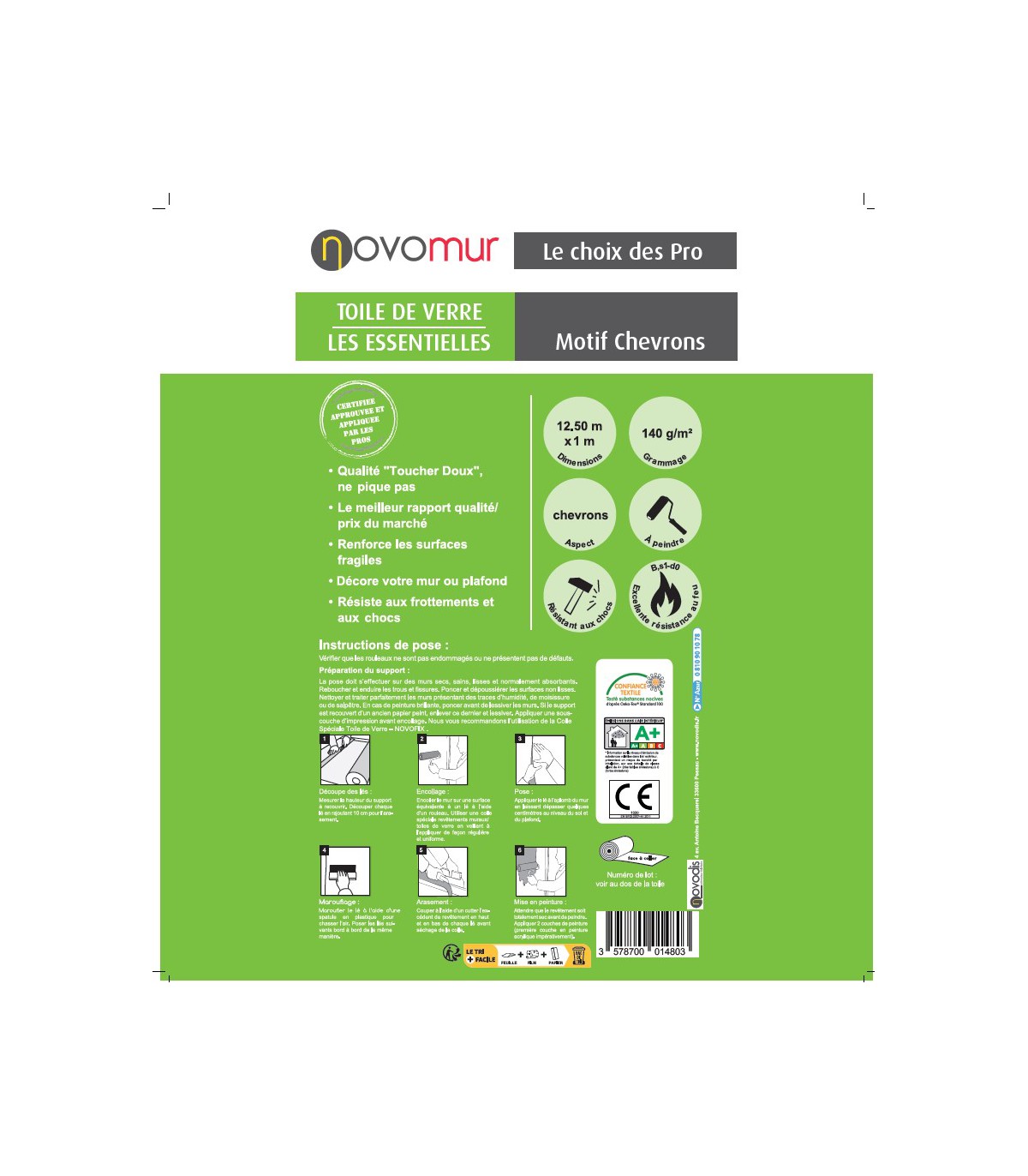 N'attendez plus pour redonner vie à domicile. Optez pour la toile de verre motif chevrons de chez Novomur dès aujourd'hui et découvrez comment rendre la décoration de votre maison à la fois simple et captivante.