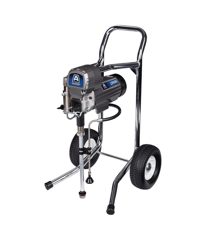 Le pulvérisateur de peinture Airlessco LP655 permet de peindre de grands bâtiments résidentiels ou même des petits bâtiments commerciaux. Il est équipé d'un châssis robuste et compact garantissant la sécurité et le transport du pulvérisateur.