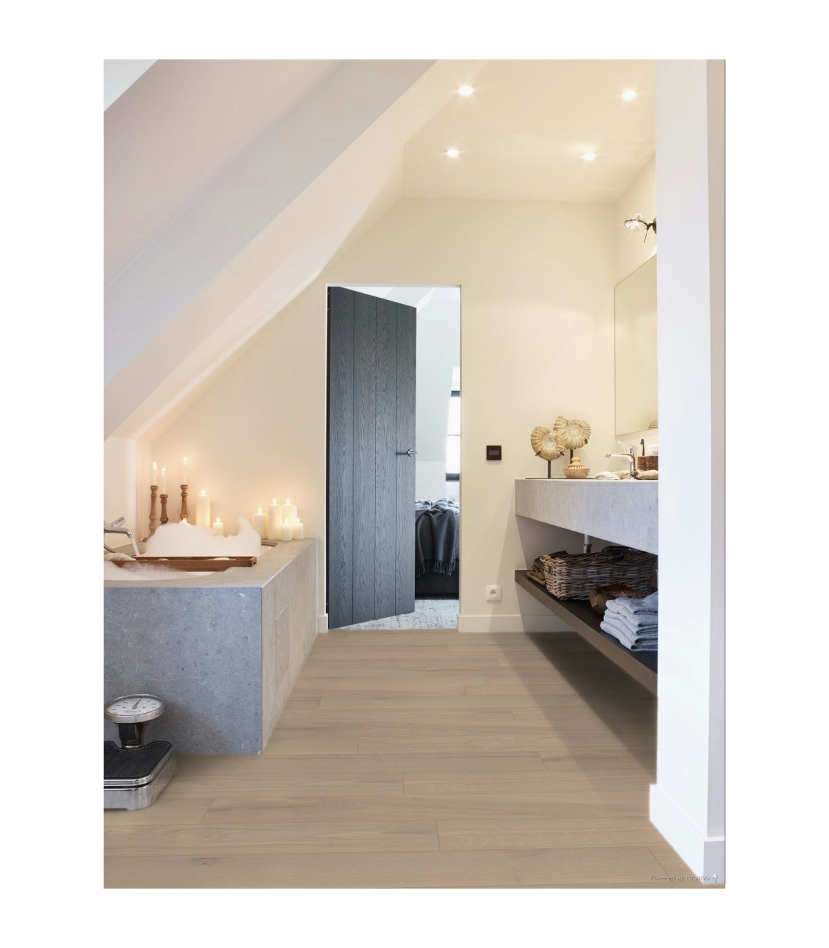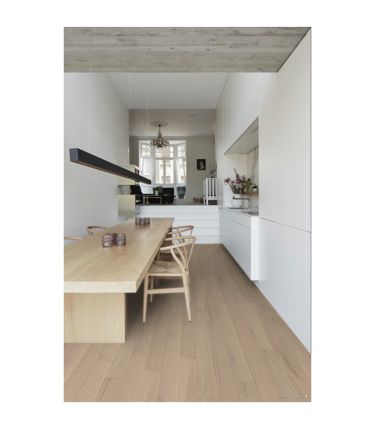 Ce parquet bois en chêne naturel séduit par sa teinte Albâtre douce et lumineuse, mélange subtil de beige rosé et de nuances claires naturelles. Il crée une atmosphère apaisante tout en apportant une vraie valeur décorative à votre intérieur.