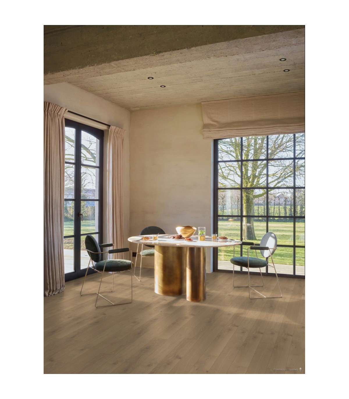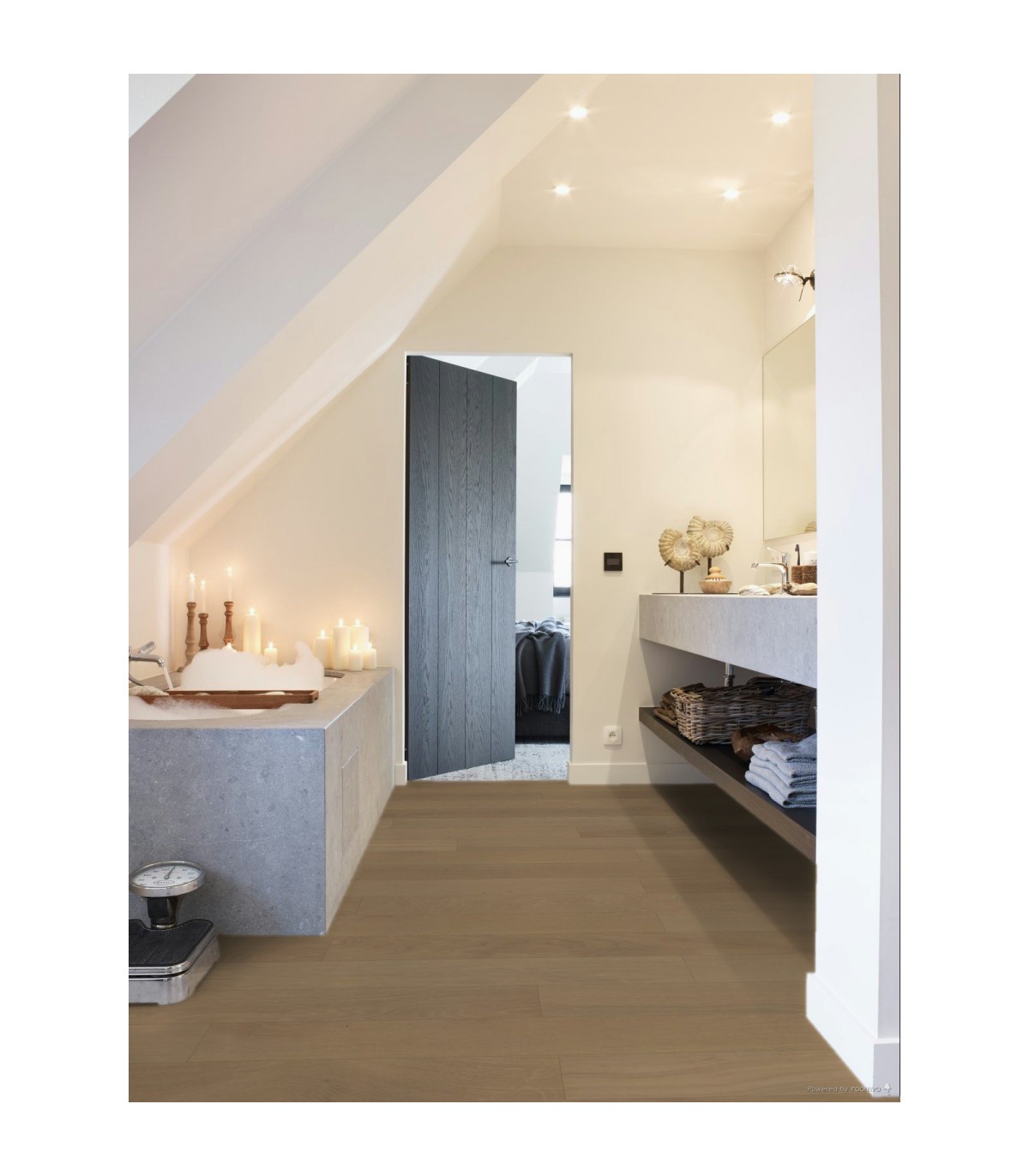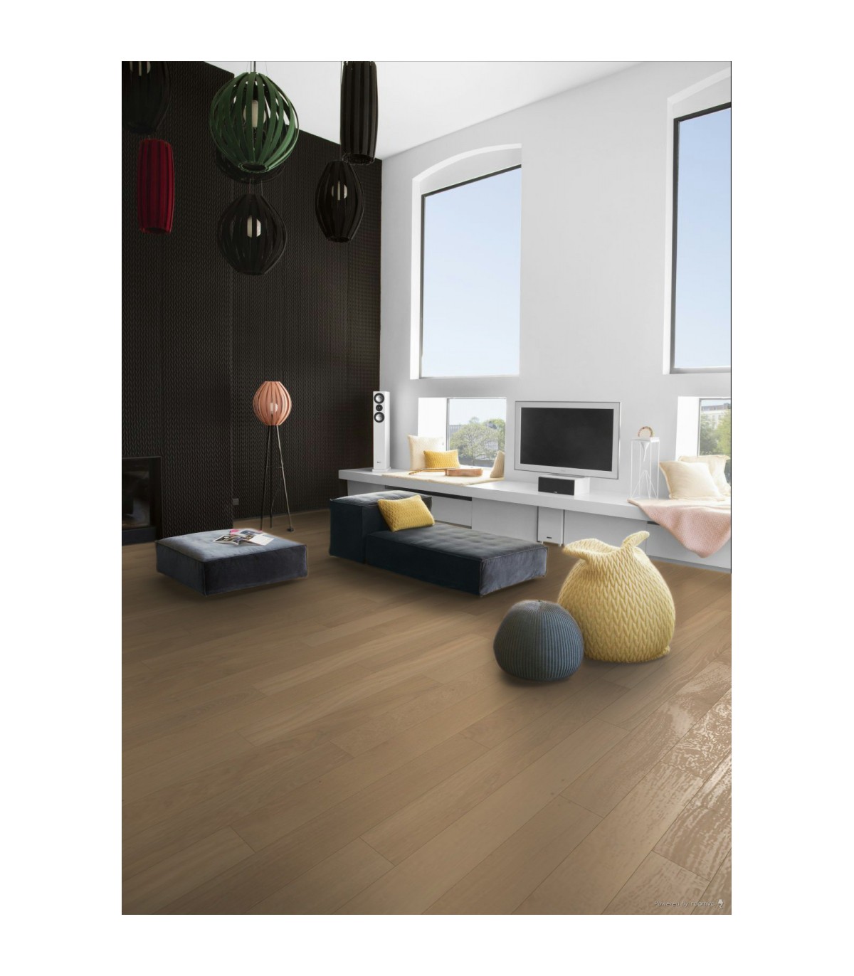 Avec sa teinte Silk aux nuances beige clair légèrement poudrées, ce parquet apporte une sensation de douceur et de clarté. Il s’intègre facilement dans les décorations modernes, scandinaves ou minimalistes, tout en conservant l’authenticité du parquet bois naturel.