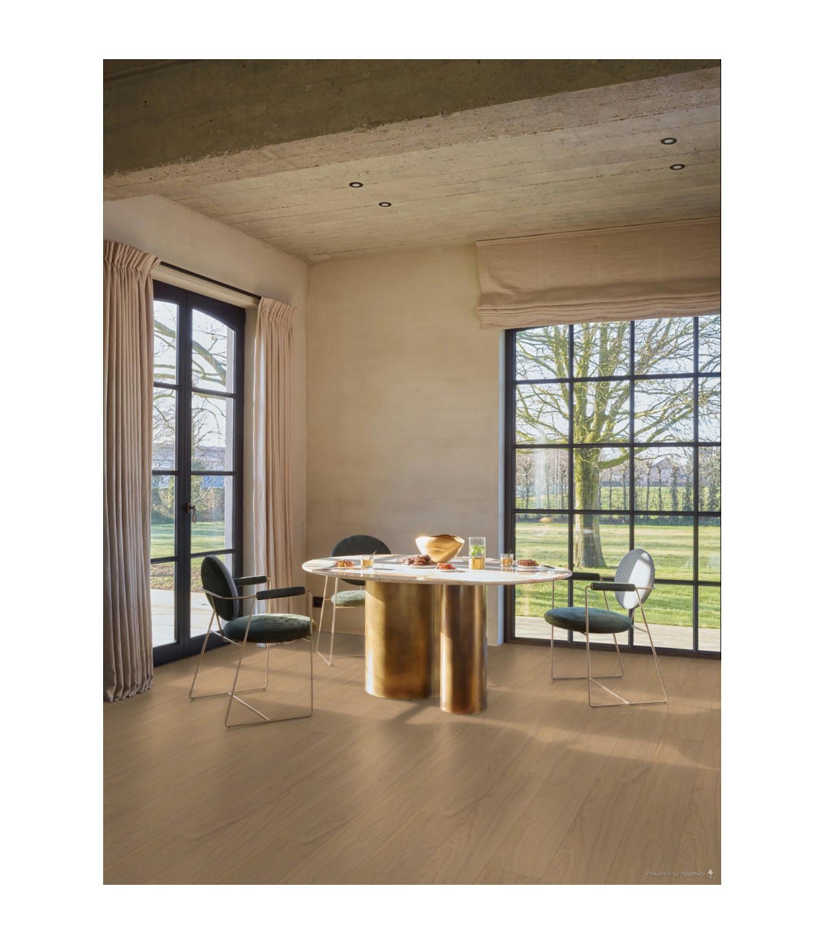 Sa teinte Chêne Naturel Pampa dévoile un équilibre subtil entre nuances brun-rouge et tons ocres chaleureux. Ce rendu unique crée une atmosphère conviviale, idéale pour des intérieurs raffinés, modernes ou inspirés de l’architecture traditionnelle revisitée.