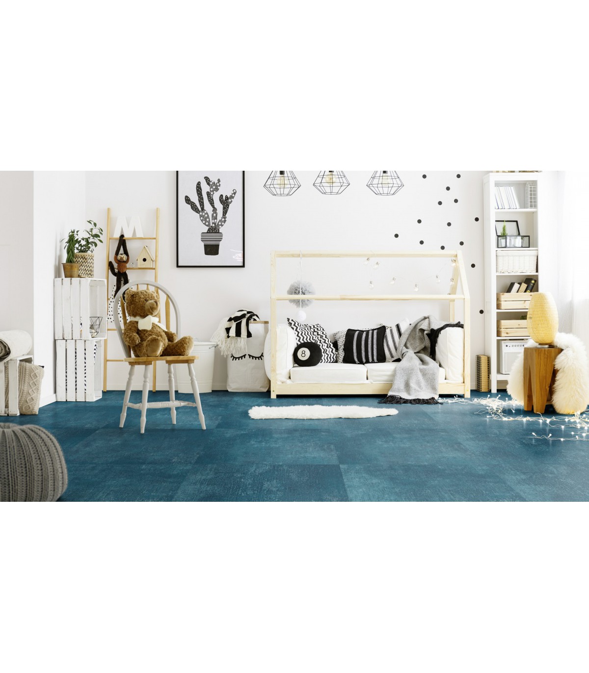 Les dalles creation 55 Fabrik Mix Indigo se caractérise par un aspect de béton patiné avec une couleur bleu océan. Faciles à installer, ces dalles permettent une mise en scène créative des contrastes, instillant immédiatement une sophistication dans votre espace. Transformez vos sols en une composition visuelle avec cette dalle de sol PVC, une fusion harmonieuse entre style et praticité.