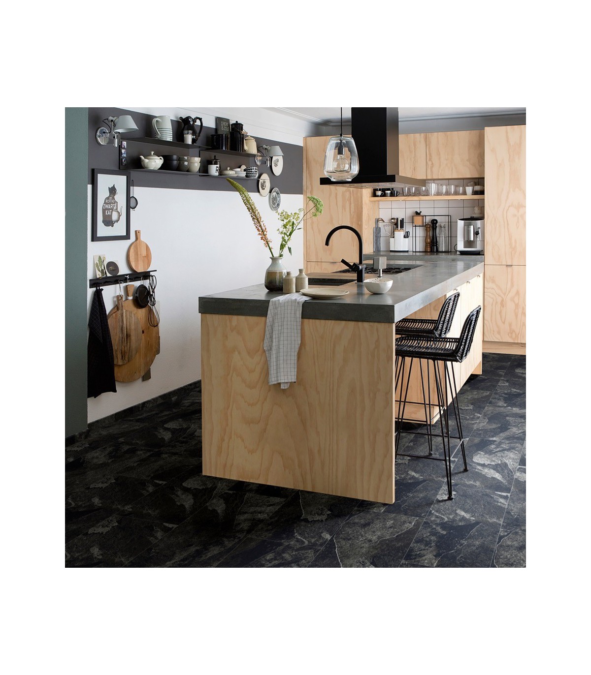 Le revêtement de sol Moduleo Roots – Mustang Slate 70998 en vinyle (structure brossée) présente des variations de couleurs étonnantes qui captivent le regard. Les couches fines, similaires à du papier à grains très fins, crée un effet ardoisé irrésistible au toucher.