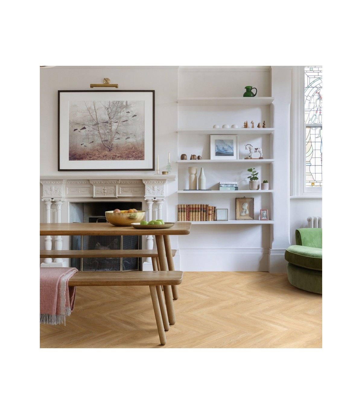 Appréciez la beauté du chêne dans votre intérieur. Le revêtement de sol Moduleo Roots – EIR Herringbone Laurel Oak 51282 en vinyle (bâton rompu structure brossée) présente un design en chêne doux et authentique qui reproduit de manière très réaliste l’aspect du bois. Ce modèle vous offre l'apparence d'un revêtement de sol à chevron et son esthétique s’adapte à tous les styles d’intérieurs. Il dispose d’un léger veinage et les motifs du bois évoluent subtilement tout au long de la surface.