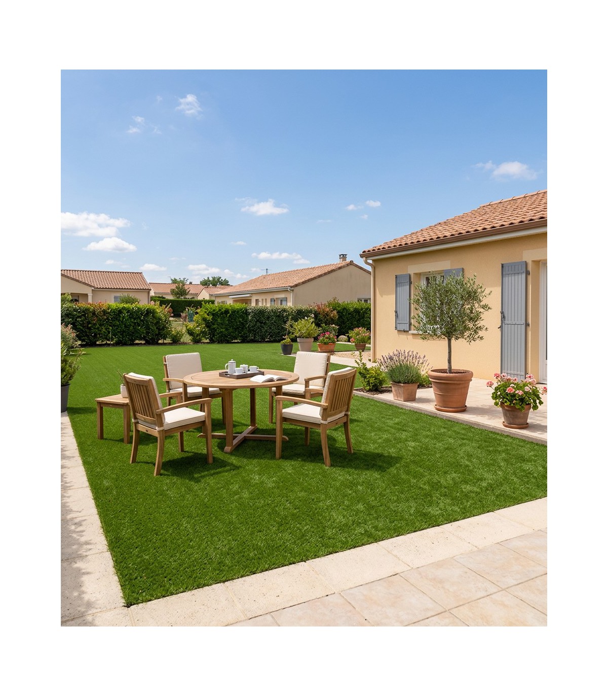Idéal pour les jardins, terrasses, bords de piscine ou zones de fort passage. Grâce à sa fibre C Shape, le gazon retrouve sa forme initiale même après piétinement fréquent, offrant un aspect toujours impeccable.