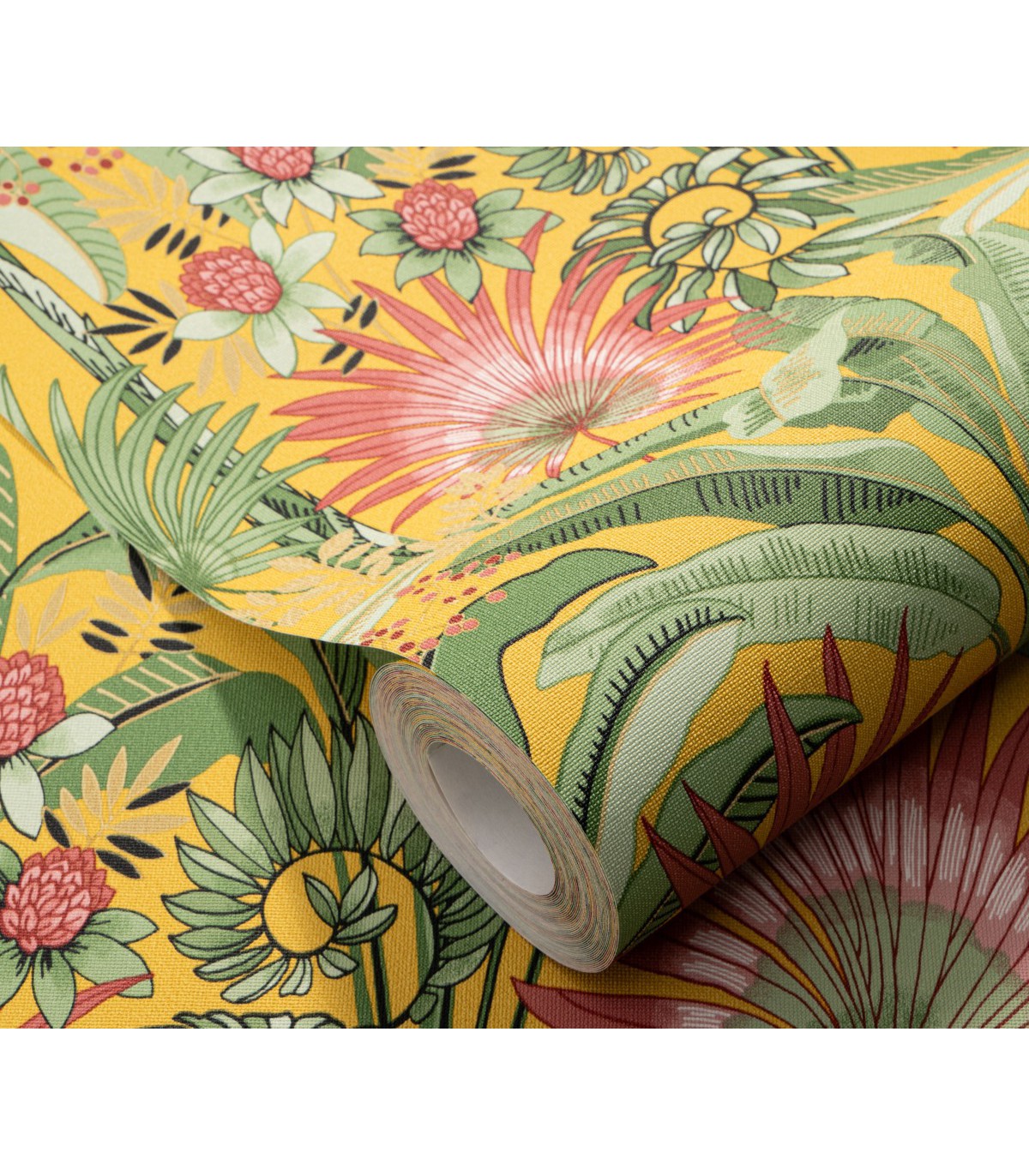 Papier peint Erismann, Collection Martinique - Intissé grainé, Décor : EXOTIC JAUNE
