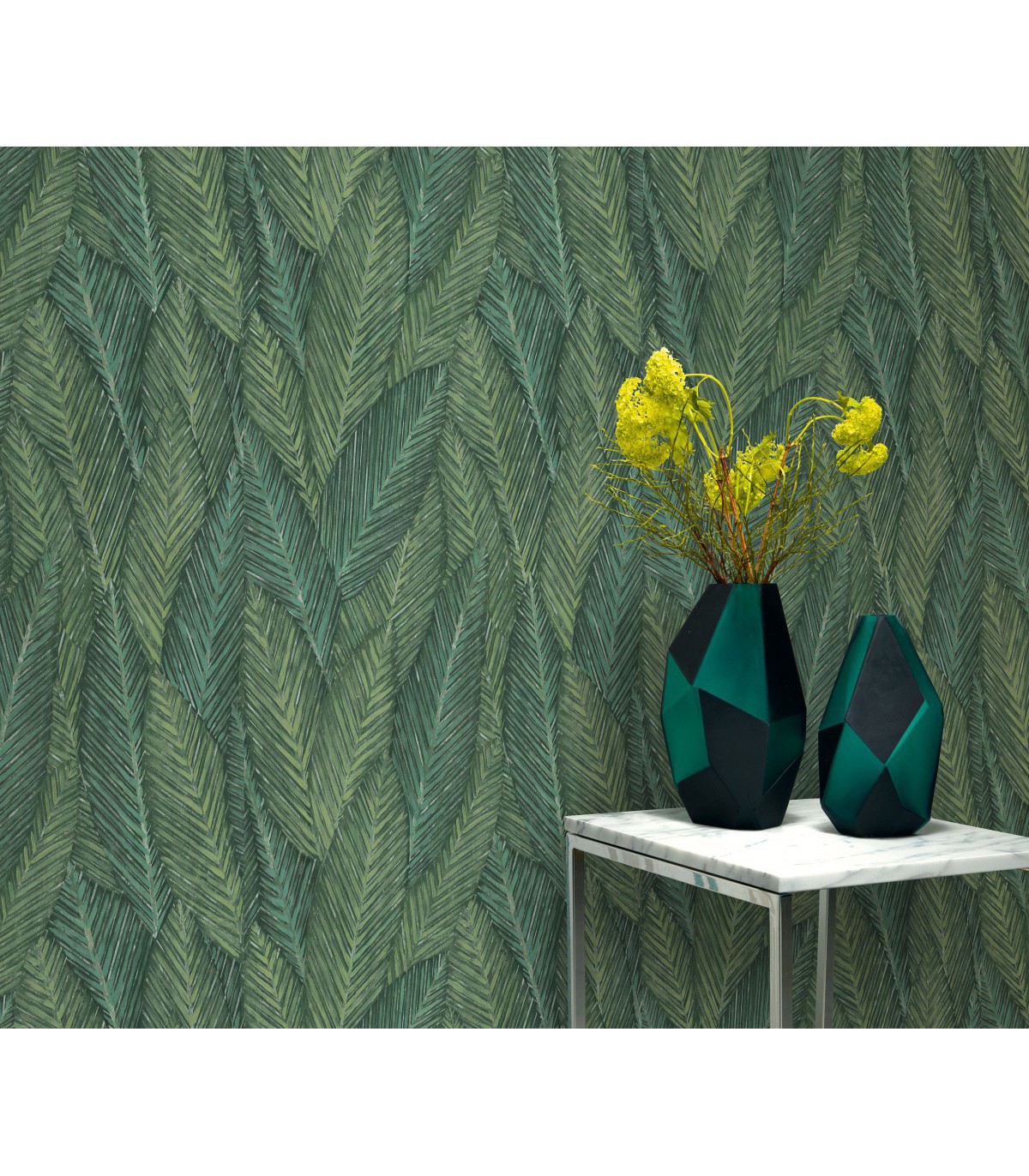 Papier peint Erismann, Collection Martinique - Intissé grainé, Décor : RETREAT VERT