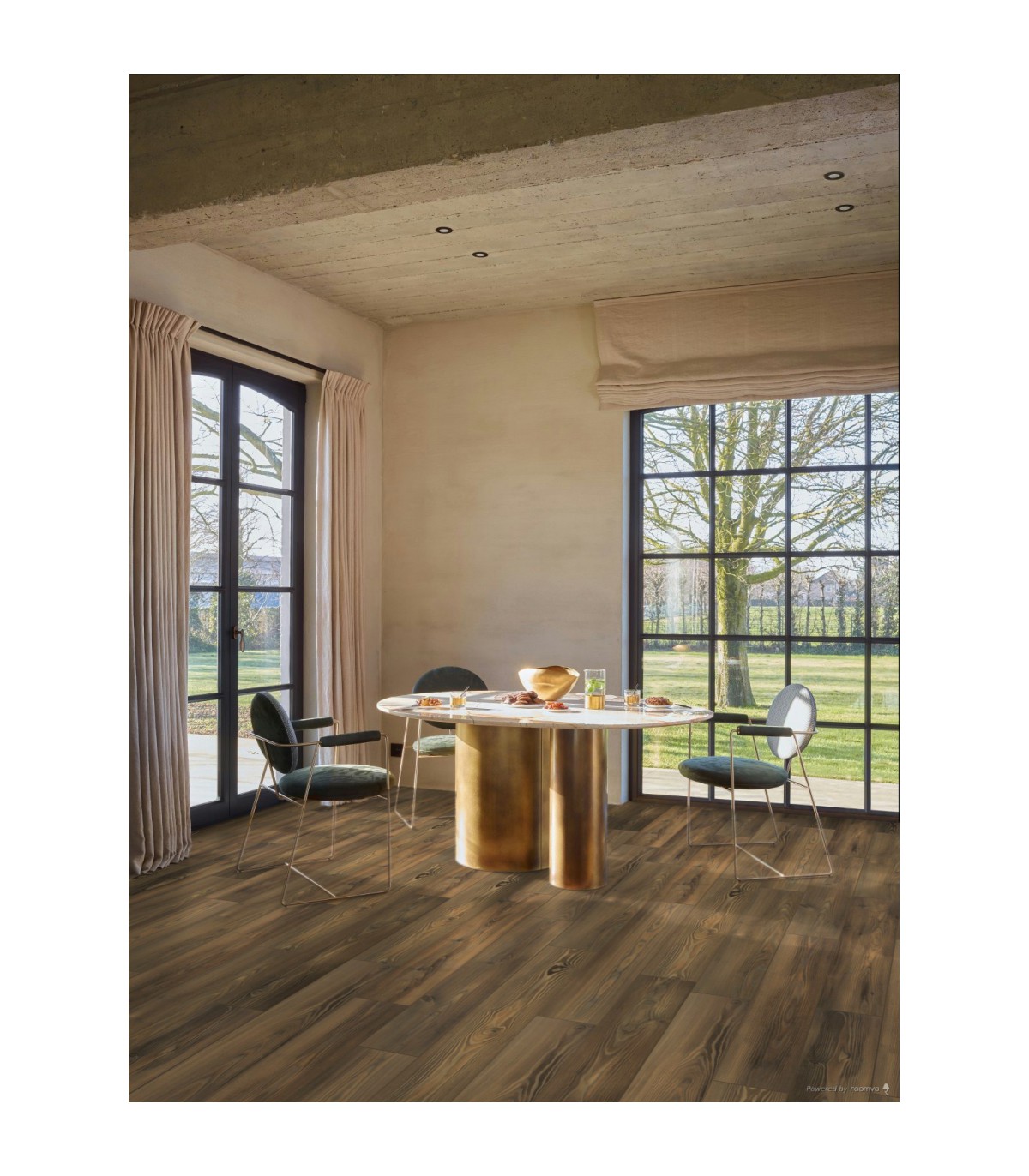 Le parquet stratifié Pacific Ragnar Warm Natural B8524 se caractérise par une teinte de bois marron chataîgne avec des noeuds et des rainures plus foncés. Elle fait référence aux teintes de bois souvent utilisés en Norvège/Suède (d'où son nom) et permettra de souligner élégamment un mobilier sombre. Cette teinte de bois contribue à créer une atmosphère sophistiquée et élégante.