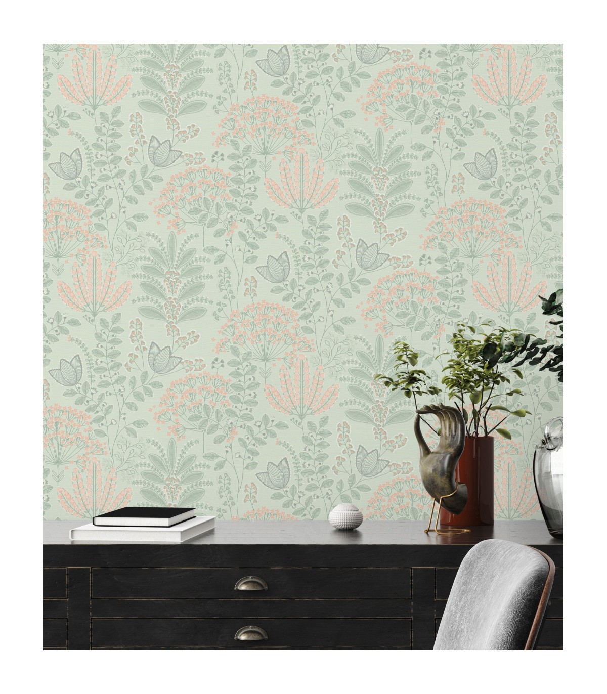 Idéal en total look pour une pièce immersive ou sur un mur d’accent pour un décor audacieux, ce papier peint floral devient un véritable élément décoratif qui valorise vos espaces sans jamais les alourdir.