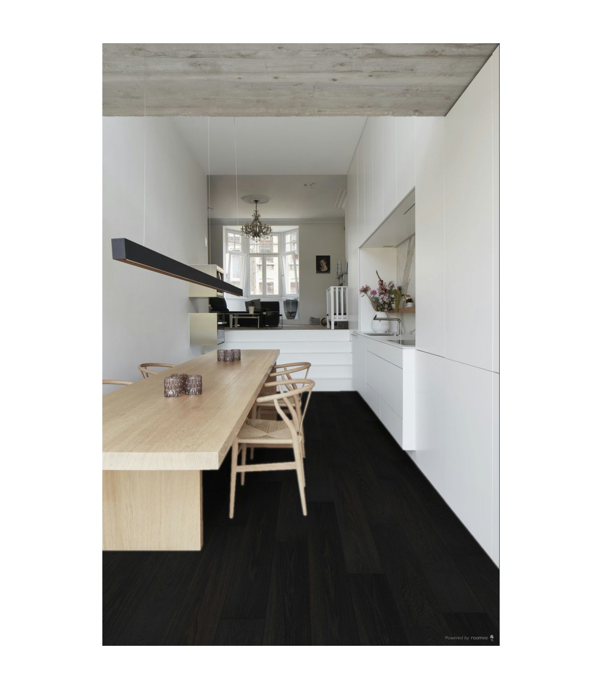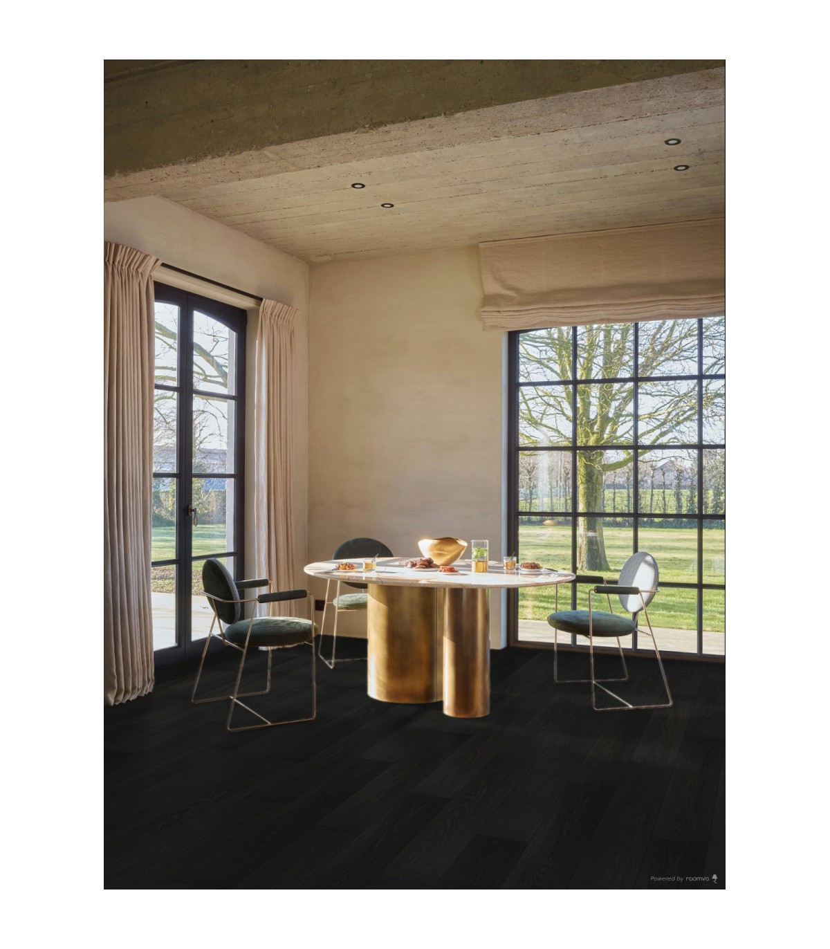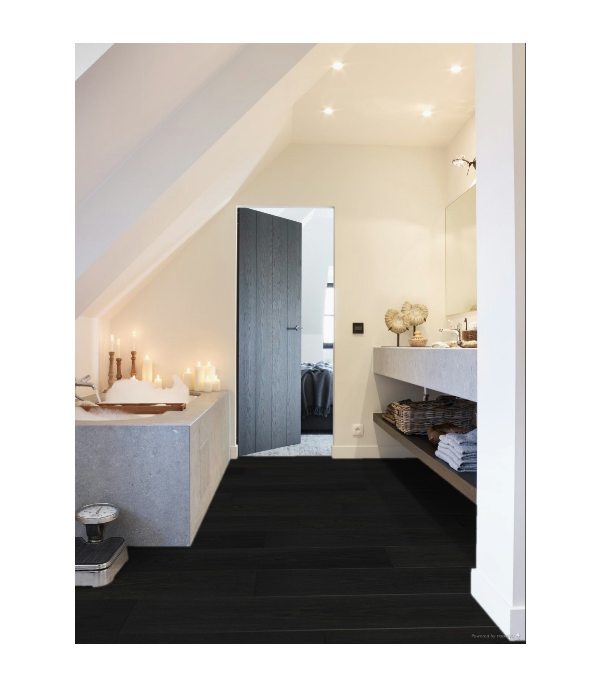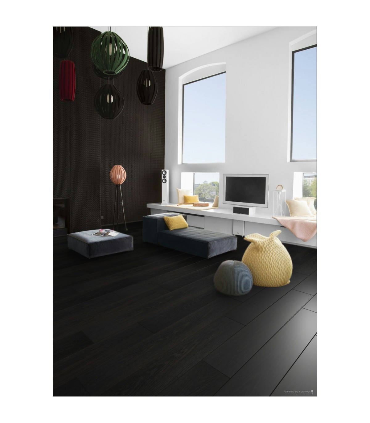 Le parquet stratifié Ocean+ Charme Black se caractérise par une teinte de bois noir qui apporte une touche élégante et sophistiquée à votre intérieur. Ce parquet est noir, ce qui crée un contraste audacieux et moderne avec le reste de la décoration de la pièce.