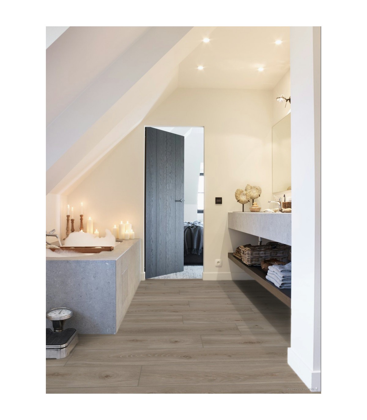 Cette référence de plancher stratifié est donc tout à fait adaptée à une pose dans une pièce constamment humide ou susceptible de recevoir des éclaboussures. Vous rêviez de poser du parquet dans votre salle de bain, votre cuisine, votre buanderie ou votre entrée ? Plus besoin de poser des lames PVC imitation bois, grâce à la collection Ocean+ de Berry Alloc. L’aspect chaleureux et naturel du bois pourra désormais se retrouver dans toutes les pièces de votre maison.