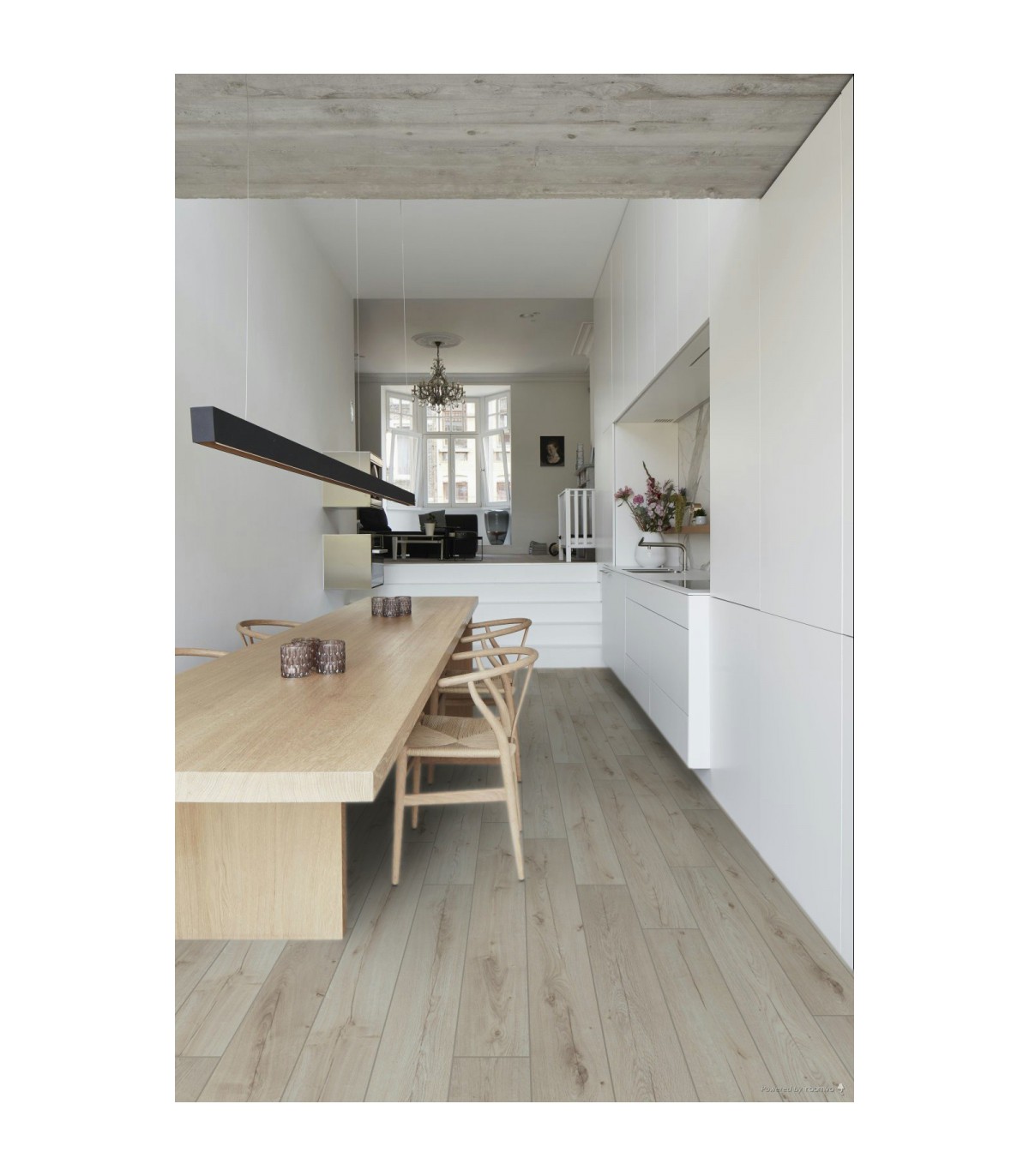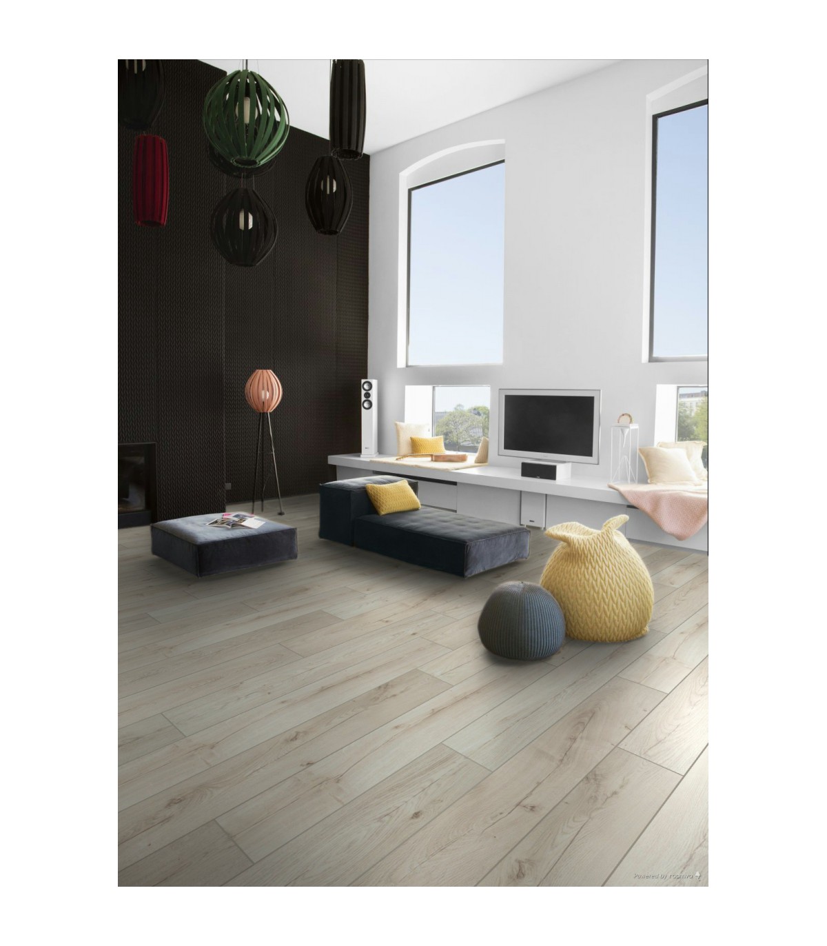 Le parquet stratifié Ocean+ Canyon Light se caractérise par une teinte lumineuse et claire avec une finition de gris très clair. Ce parquet stratifié s'adaptera facilement à votre décoration d'intérieur et est idéal pour les ambiances lumineuses et pures.