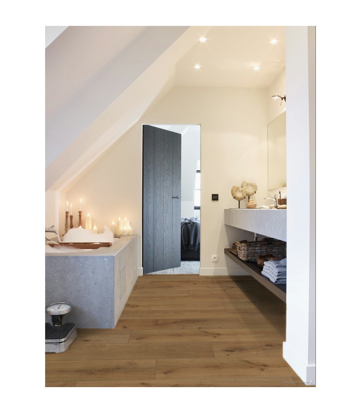 Cette référence de plancher stratifié est donc tout à fait adaptée à une pose dans une pièce constamment humide ou susceptible de recevoir des éclaboussures. Vous rêviez de poser du parquet dans votre salle de bain, votre cuisine, votre buanderie ou votre entrée ? Plus besoin de poser des lames PVC imitation bois, grâce à la collection Ocean+ de Berry Alloc. L’aspect chaleureux et naturel du bois pourra désormais se retrouver dans toutes les pièces de votre maison.