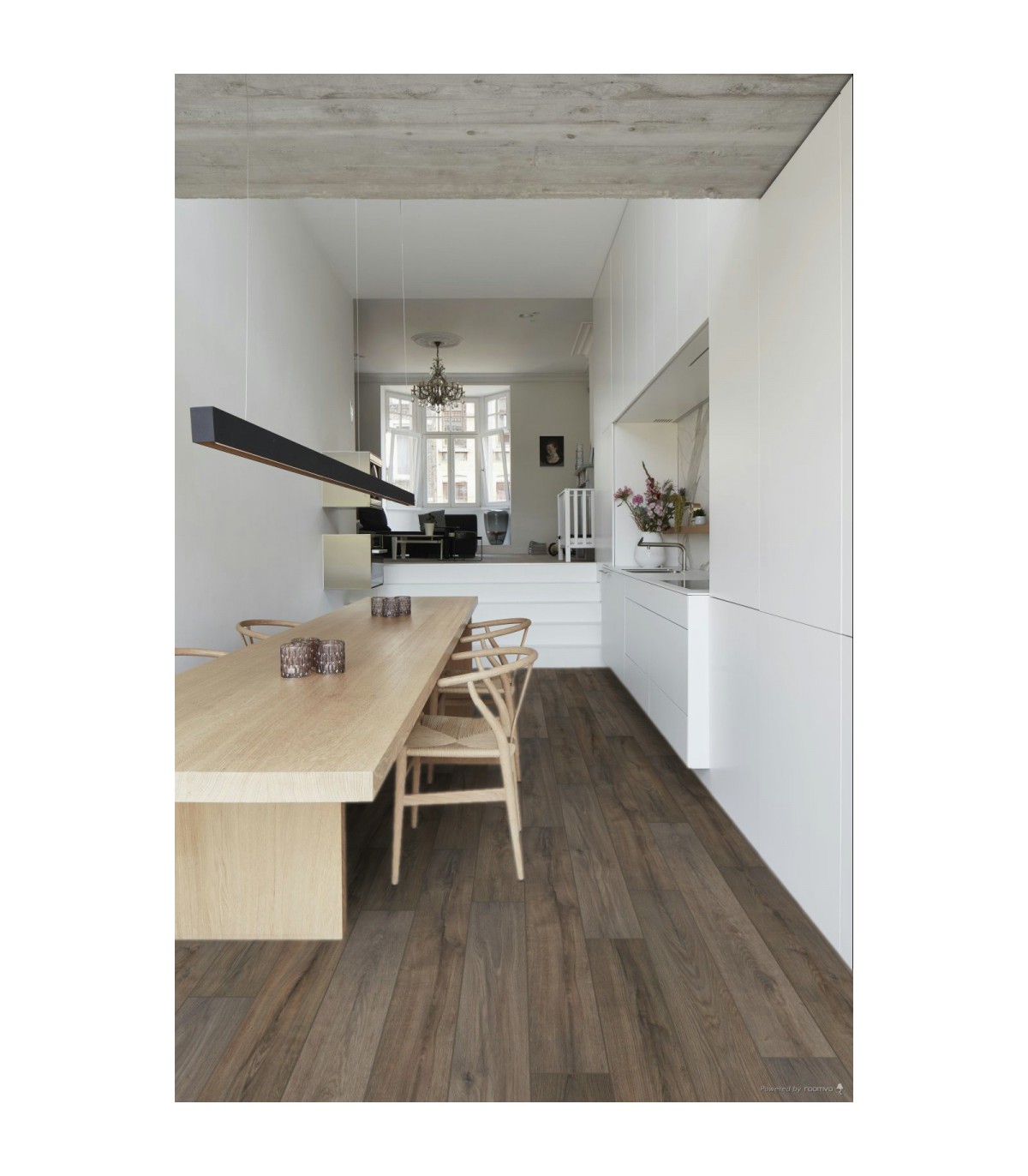 Le parquet stratifié Epic Brown se caractérise par une teinte de bois marron foncé légèrement délavé qui apportera du caractère et de la chaleur à votre pièce. Le parquet Epic Brown est souvent utilisé pour créer un contraste avec une pièce aux tons plus clairs et des éléments de décoration blanc.
