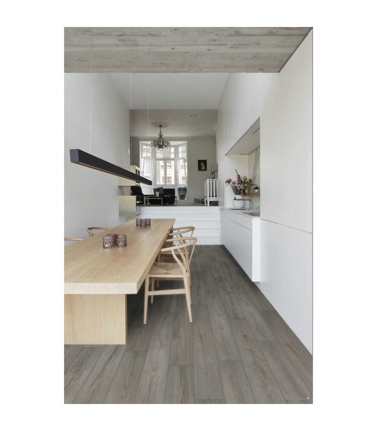 Le parquet stratifié Ocean+ Epic Grey se caractérise par une teinte naturelle grise qui imite le vieillissement naturel du bois. Le parquet Epic Grey est souvent utilisé pour donner à votre intérieur un aspect chaleureux et rustique, il s'accorde très bien avec des murs blancs et un mobilier aux tons clairs ou sombre.