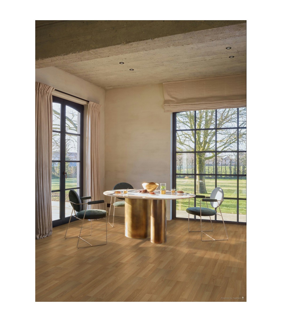 Le parquet stratifié Ocean+ Majesty Natural 2207 se caractérise par une teinte de bois de chêne qui s'adaptera facilement à votre décoration d'intérieur. Le parquet marron clair est souvent utilisé pour créer un contraste avec une pièce aux murs clairs et des éléments de décoration blanc.