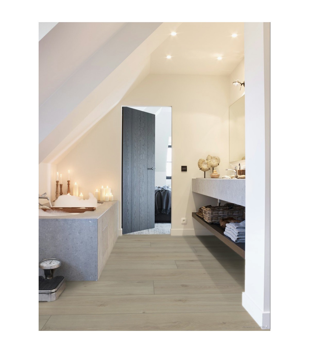 Cette référence de plancher stratifié est donc tout à fait adaptée à une pose dans une pièce constamment humide ou susceptible de recevoir des éclaboussures. Vous rêviez de poser du parquet dans votre salle de bain, votre cuisine, votre buanderie ou votre entrée ? Plus besoin de poser des lames PVC imitation bois, grâce à la collection Ocean+ de Berry Alloc. L’aspect chaleureux et naturel du bois pourra désormais se retrouver dans toutes les pièces de votre maison.