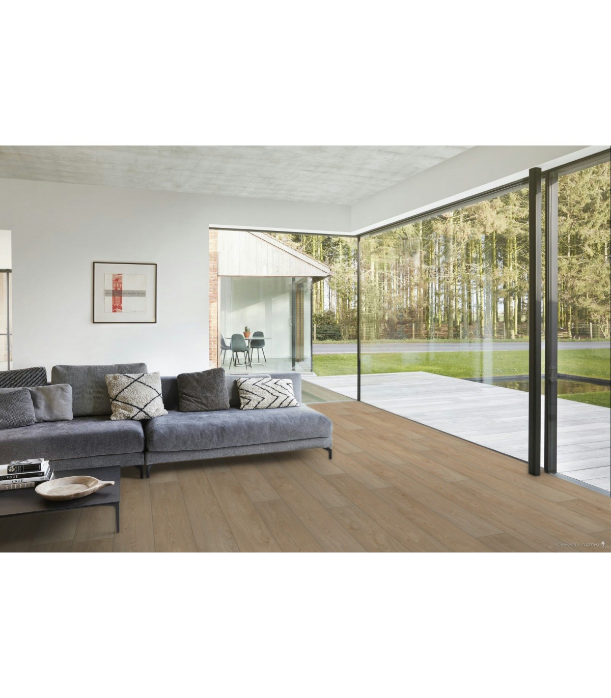 Le parquet stratifié Ocean+ Jazz Sand Natural 1020 se caractérise par une teinte de bois sable doré, une teinte qui s'adaptera facilement à votre décoration d'intérieur. Le parquet Jazz Sand Natural 1020 est souvent utilisé pour créer un contraste avec une pièce aux murs blancs ou en pierre. Il s'associe très bien à des meubles en bois sombre.