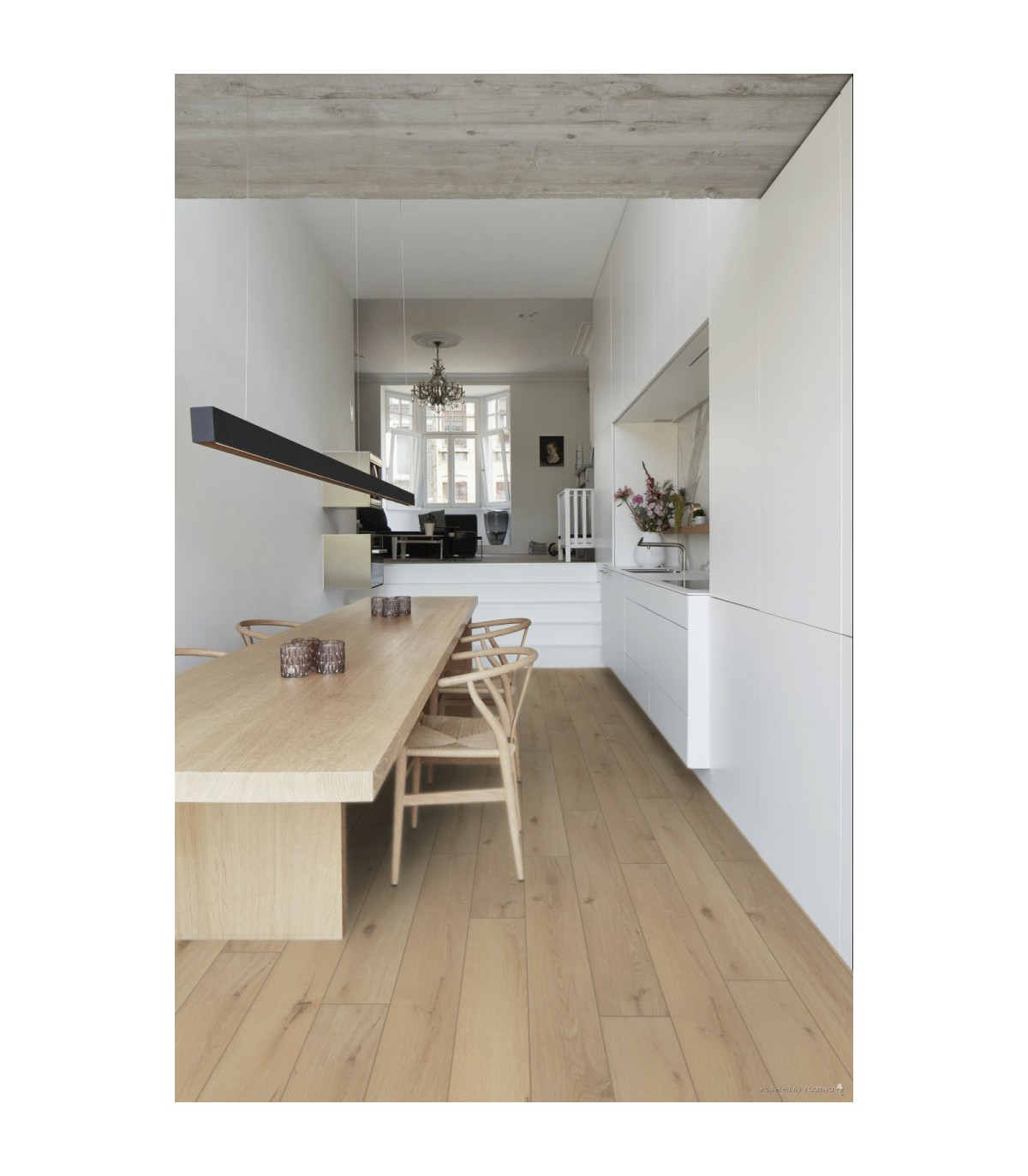 Forte de sa technologie Waterproof la collection Ocean+ n’en délaisse pas moins le côté esthétique. En effet elle se distingue par un rendu bois véritable qui n’a rien à envier à une planche de bois brut. Les détails du bois sont bien visibles et donnent du caractère à la pièce sans tomber dans le rustique. L’équipe d’experts Berry Alloc s’est assuré que chaque typologie de bois (chêne/pin) possède une finition unique. De la finition douce et subtile du pin à la finition en bois brut du chêne chaque nœud et chaque gerce vous rapprocheront du bois naturel. Le rendu final est chaleureux et apporte de l’élégance à votre décoration d’intérieur. |