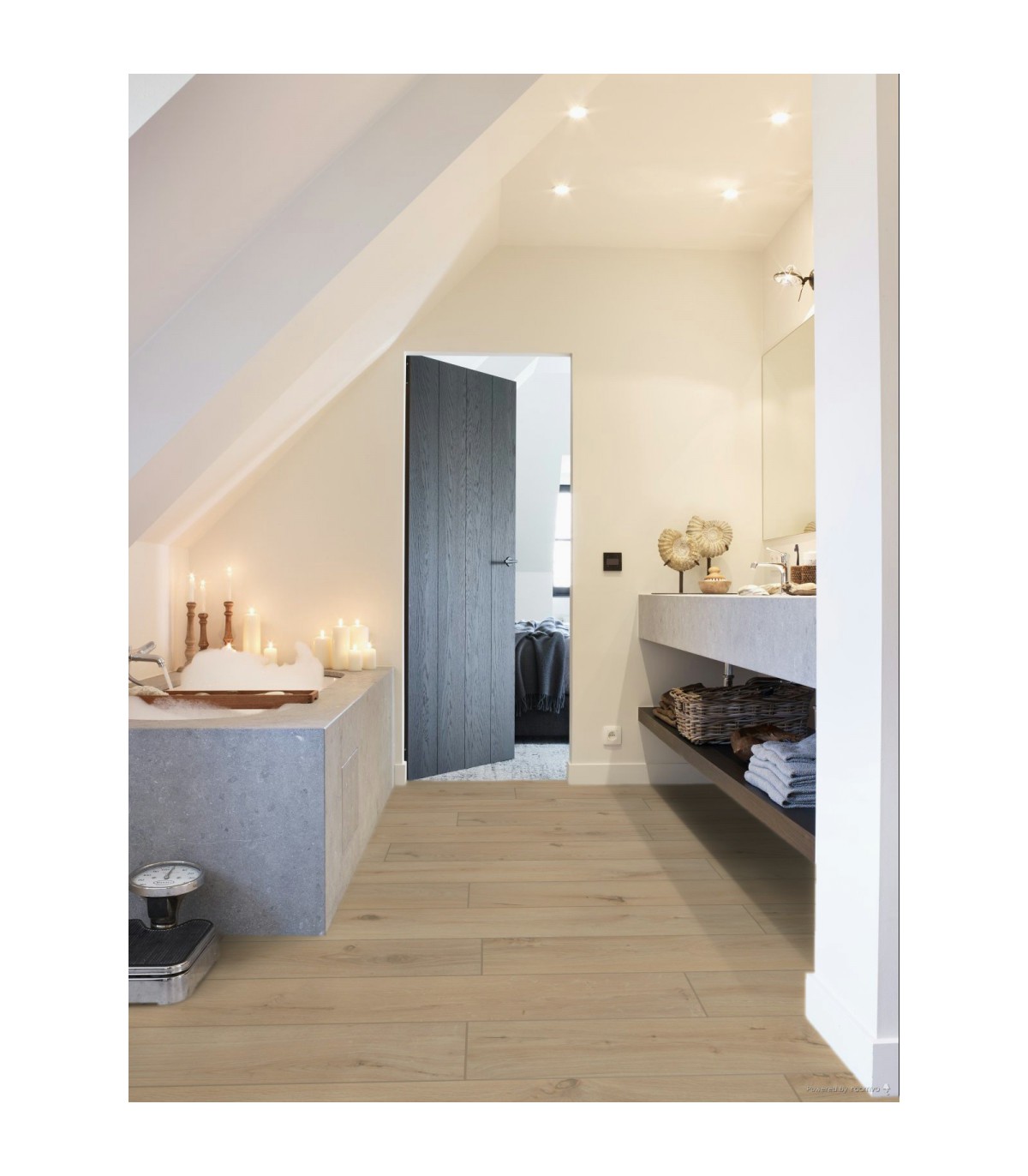 Cette référence de plancher stratifié est donc tout à fait adaptée à une pose dans une pièce constamment humide ou susceptible de recevoir des éclaboussures. Vous rêviez de poser du parquet dans votre salle de bain, votre cuisine, votre buanderie ou votre entrée ? Plus besoin de poser des lames PVC imitation bois, grâce à la collection Ocean+ de Berry Alloc. L’aspect chaleureux et naturel du bois pourra désormais se retrouver dans toutes les pièces de votre maison.