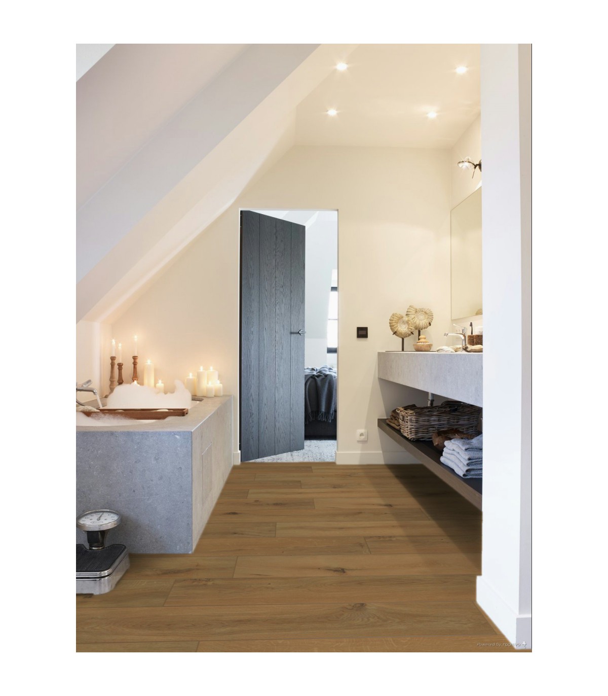 Cette référence de plancher stratifié est donc tout à fait adaptée à une pose dans une pièce constamment humide ou susceptible de recevoir des éclaboussures. Vous rêviez de poser du parquet dans votre salle de bain, votre cuisine, votre buanderie ou votre entrée ? Plus besoin de poser des lames PVC imitation bois, grâce à la collection Ocean+ de Berry Alloc. L’aspect chaleureux et naturel du bois pourra désormais se retrouver dans toutes les pièces de votre maison.
