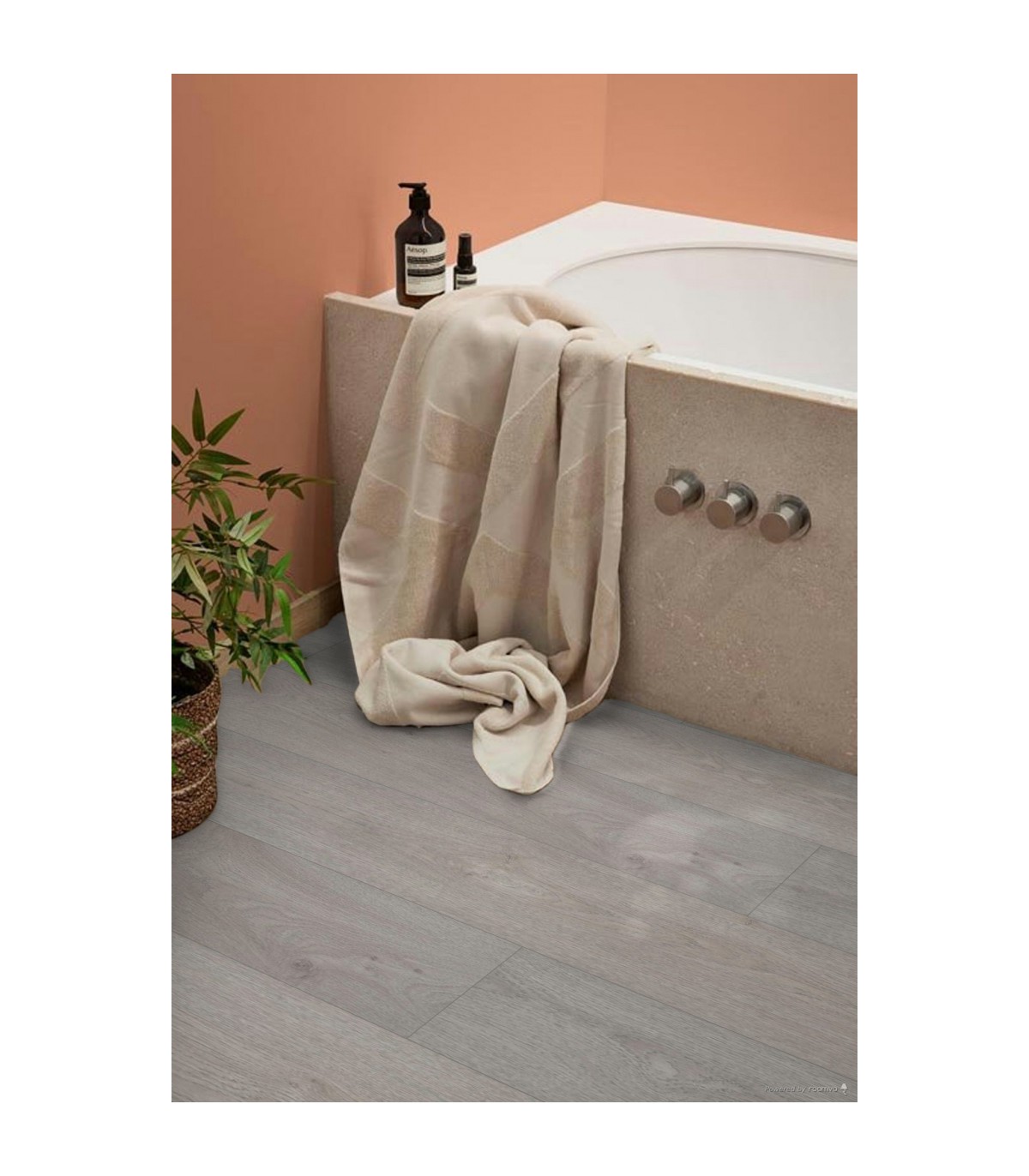 Cette référence de plancher stratifié est donc tout à fait adaptée à une pose dans une pièce constamment humide ou susceptible de recevoir des éclaboussures. Vous rêviez de poser du parquet dans votre salle de bain, votre cuisine, votre buanderie ou votre entrée ? Plus besoin de poser des lames PVC imitation bois, grâce à la collection Ocean+ de Berry Alloc. L’aspect chaleureux et naturel du bois pourra désormais se retrouver dans toutes les pièces de votre maison.