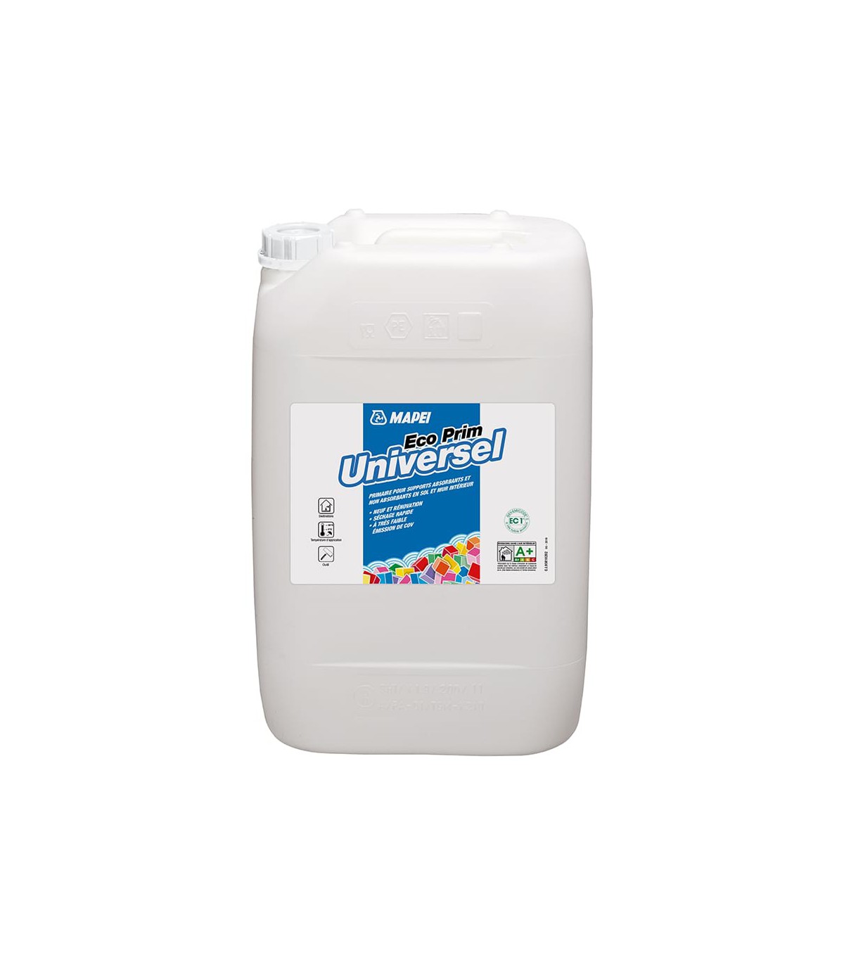 Le Eco Prim Universel de Mapei est un primaire d’adhérence monocomposant, prêt à l’emploi et conçu pour recevoir tout type de ragréage ou mortier-colle en intérieur. Formulé sans solvant avec des émissions extrêmement faibles de composés organiques volatils (classe EMICODE EC1 Plus), il respecte ainsi les normes de qualité de l’air intérieur. Sa texture liquide blanche s’applique facilement à la brosse ou au rouleau et assure une adhésion parfaite pour la pose de revêtements, qu’ils soient posés sur des supports absorbants ou non. Sa polyvalence lui permet d’être utilisé aussi bien en neuf qu’en rénovation.