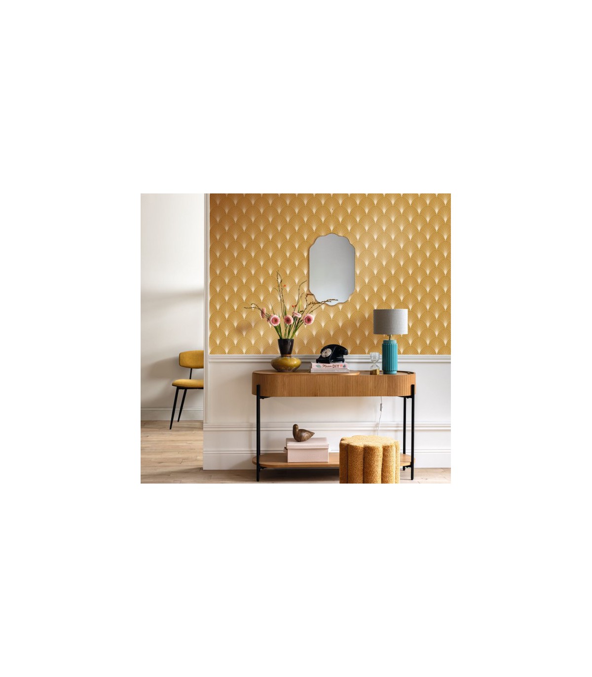 Plus qu’un simple revêtement mural, ce papier peint se vit comme une matière décorative. Les nuances dorées apportent une touche sophistiquée sans jamais être ostentatoires. En solo sur un mur complet, il enveloppe l’espace d’une aura apaisante. En association avec des papiers peints à motifs ou des matières naturelles comme le bois clair, le rotin ou la pierre, il devient un contrepoint élégant, jouant avec les contrastes et les textures.