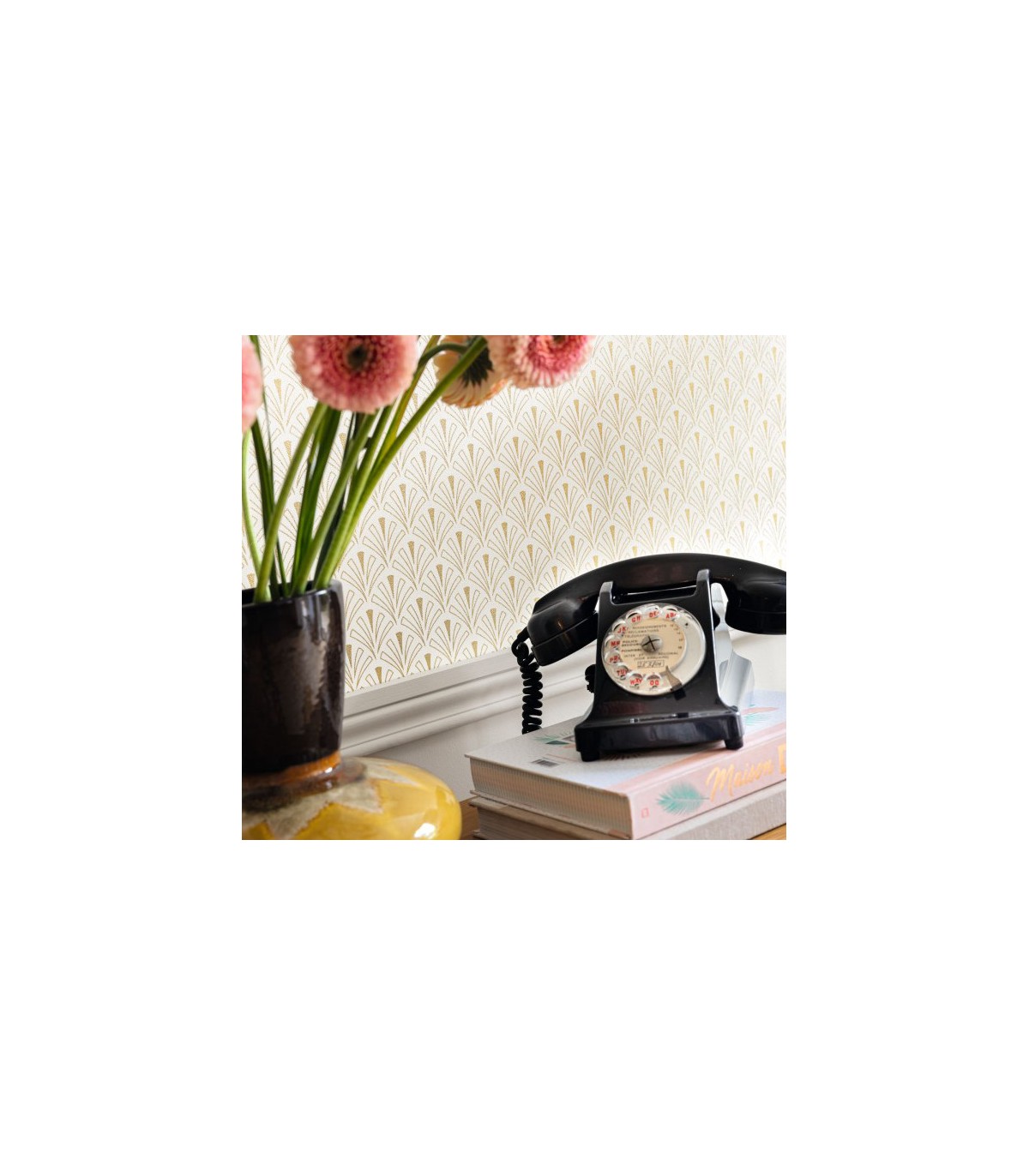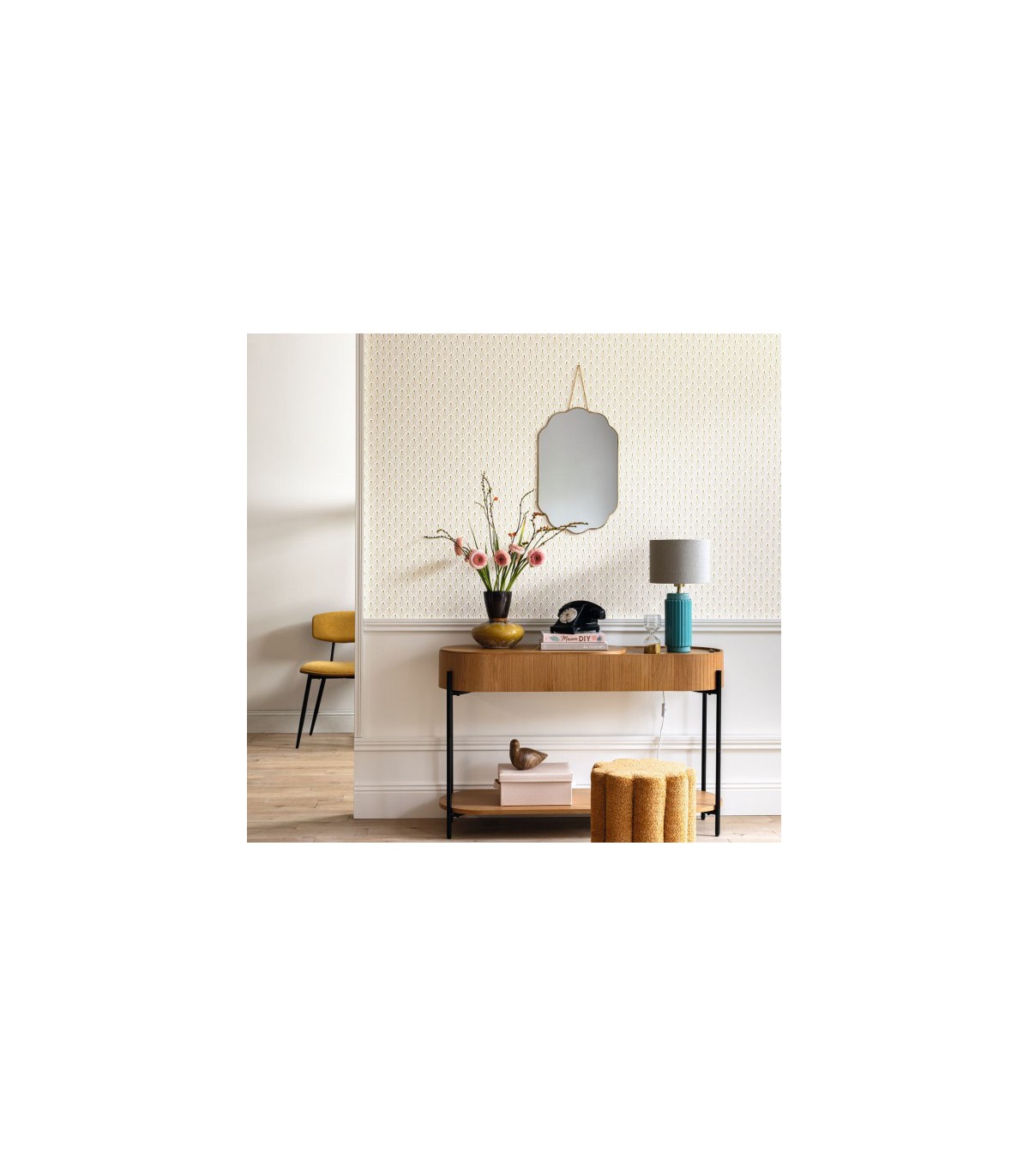 Plus qu’un simple revêtement mural, ce papier peint se vit comme une matière décorative. Les nuances dorées apportent une touche sophistiquée sans jamais être ostentatoires. En solo sur un mur complet, il enveloppe l’espace d’une aura apaisante. En association avec des papiers peints à motifs ou des matières naturelles comme le bois clair, le rotin ou la pierre, il devient un contrepoint élégant, jouant avec les contrastes et les textures.