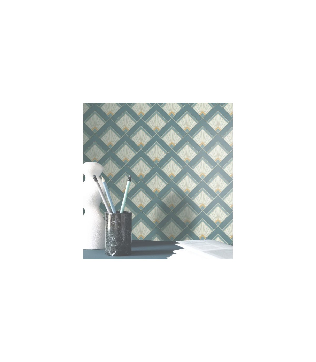 Papier peint Effervescence BLEU CANARD DORÉ - Collection Élégance - CASELIO - Réf. ELC105316162