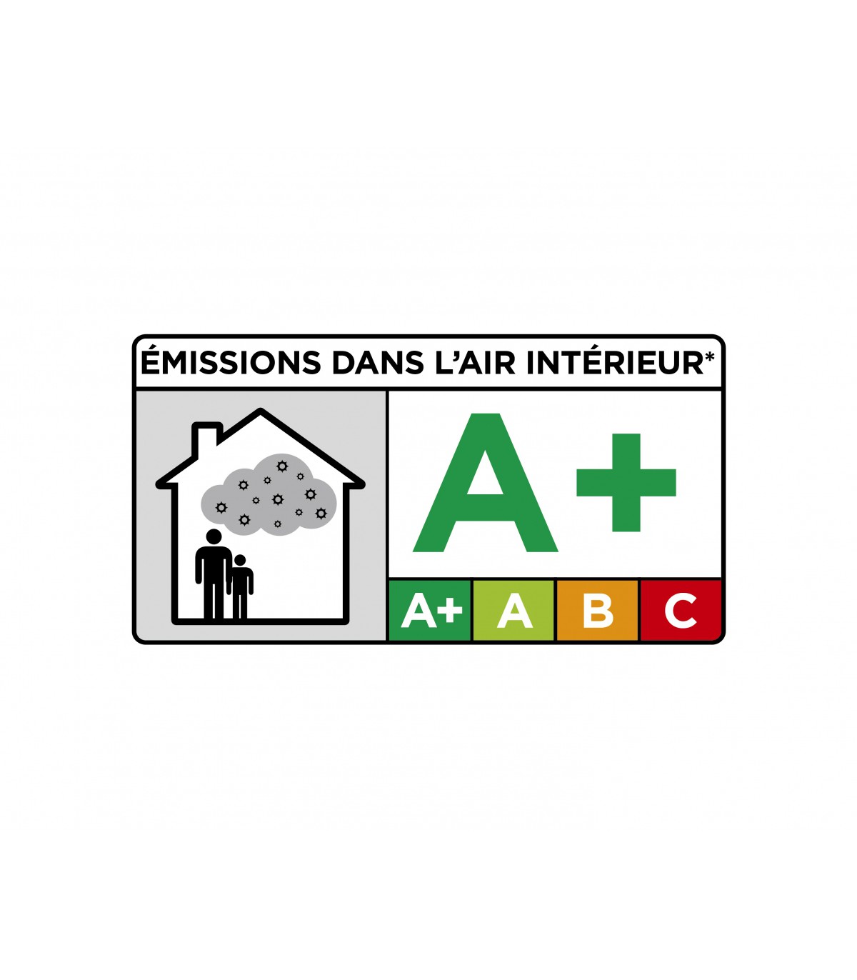Les émissions dans l’air de TVOC à 28 jours (NF EN 16000-6) de ce revêtement seront classées A+ (la meilleure classe) dans le cadre de l’étiquetage sanitaire français. |