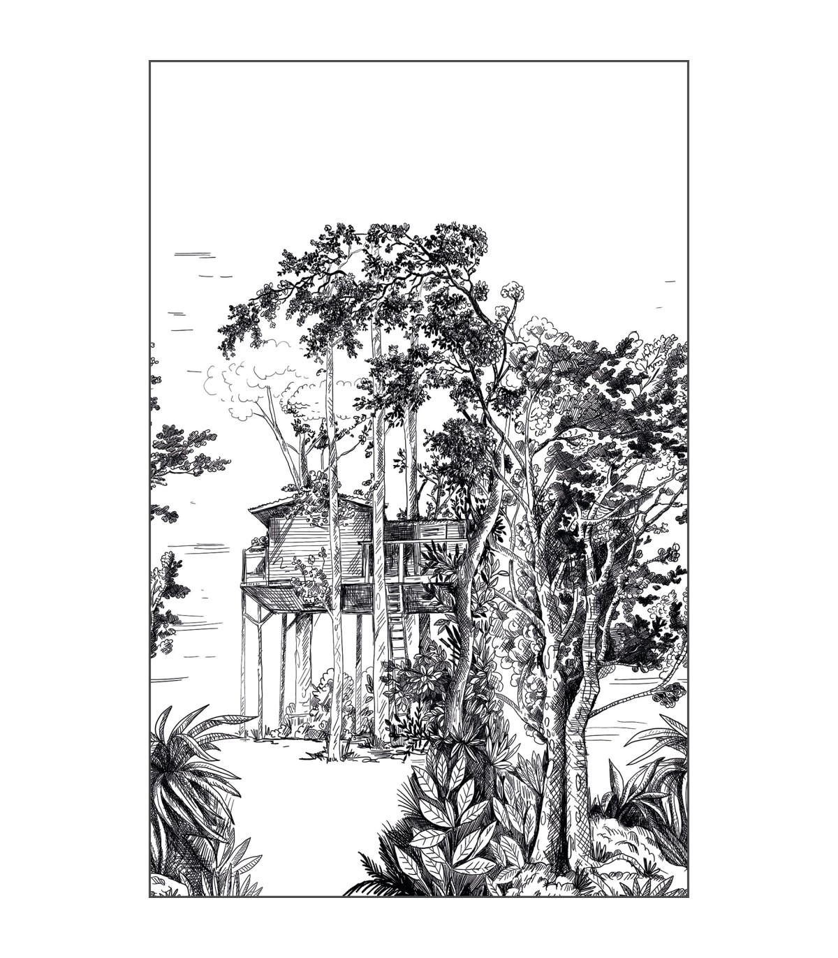 Le panoramique Garden Shed, issu de la collection Green Life 2, propose une immersion visuelle dans un univers végétal graphique. Son motif foisonnant de feuillages stylisés se déploie sur fond noir, offrant un contraste saisissant qui accentue la profondeur et la modernité du décor. Ce jeu de noir intense et de verdure raffinée apporte à la pièce un style contemporain et audacieux, idéal pour transformer un mur en véritable tableau décoratif. Que ce soit dans un salon, une chambre ou un bureau, il devient la pièce maîtresse de la décoration.