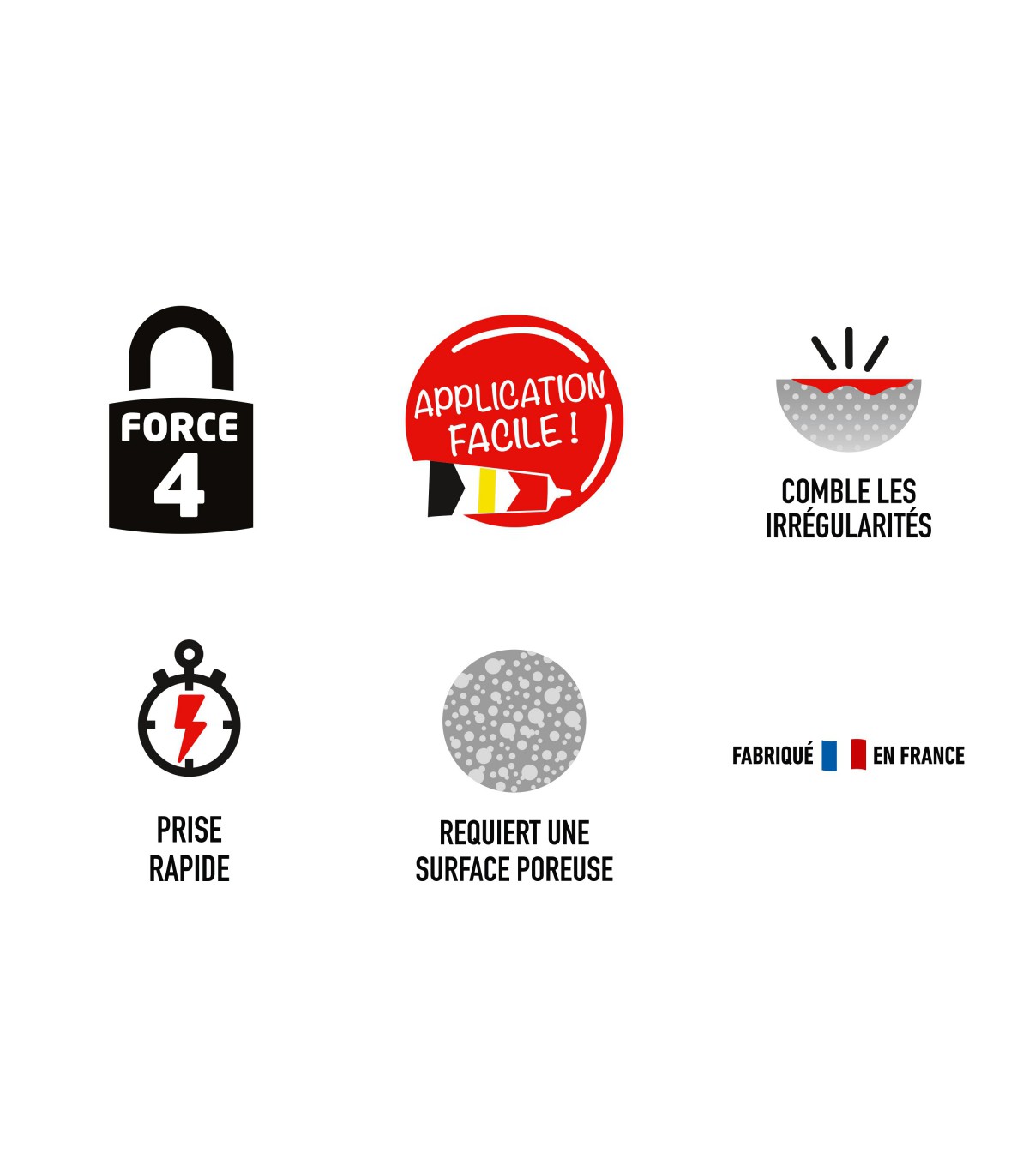 ATTENTION : Ne convient pas pour le PE, PP, PTEE, PVC, miroirs et plâtre brut