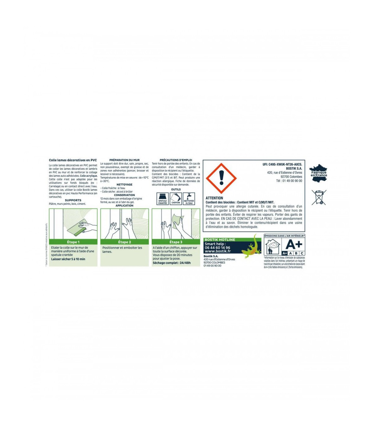 La colle Lames Décoratives en PVC Bostik est une colle acrylique qui permet de coller les lames décoratives et lambris en PVC.