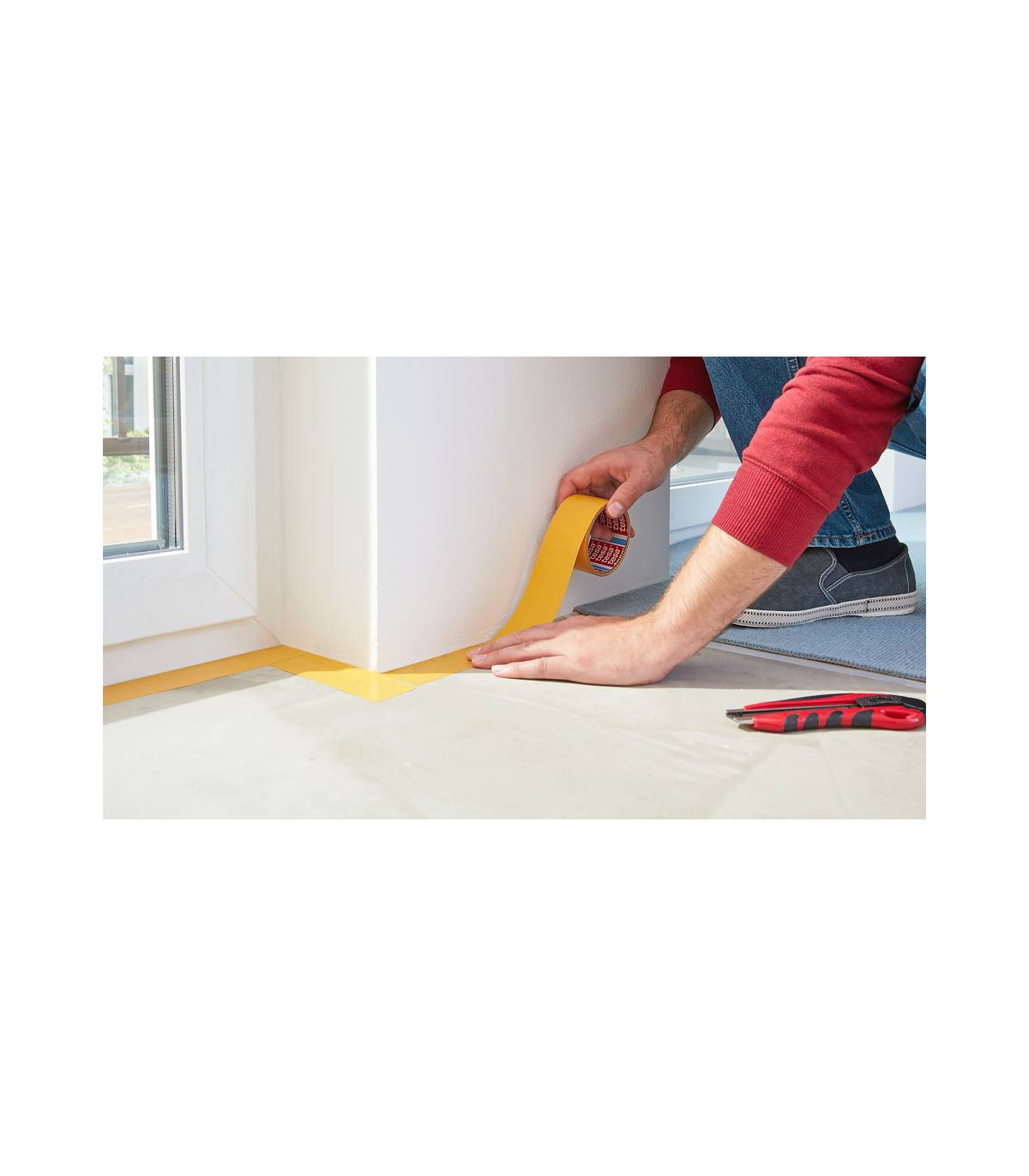 Ce ruban est idéal pour les situations où un adhésif standard ne tiendrait pas : parquets légèrement usés, bétons bruts, carrelages à joints creux, ou autres surfaces présentant des irrégularités.