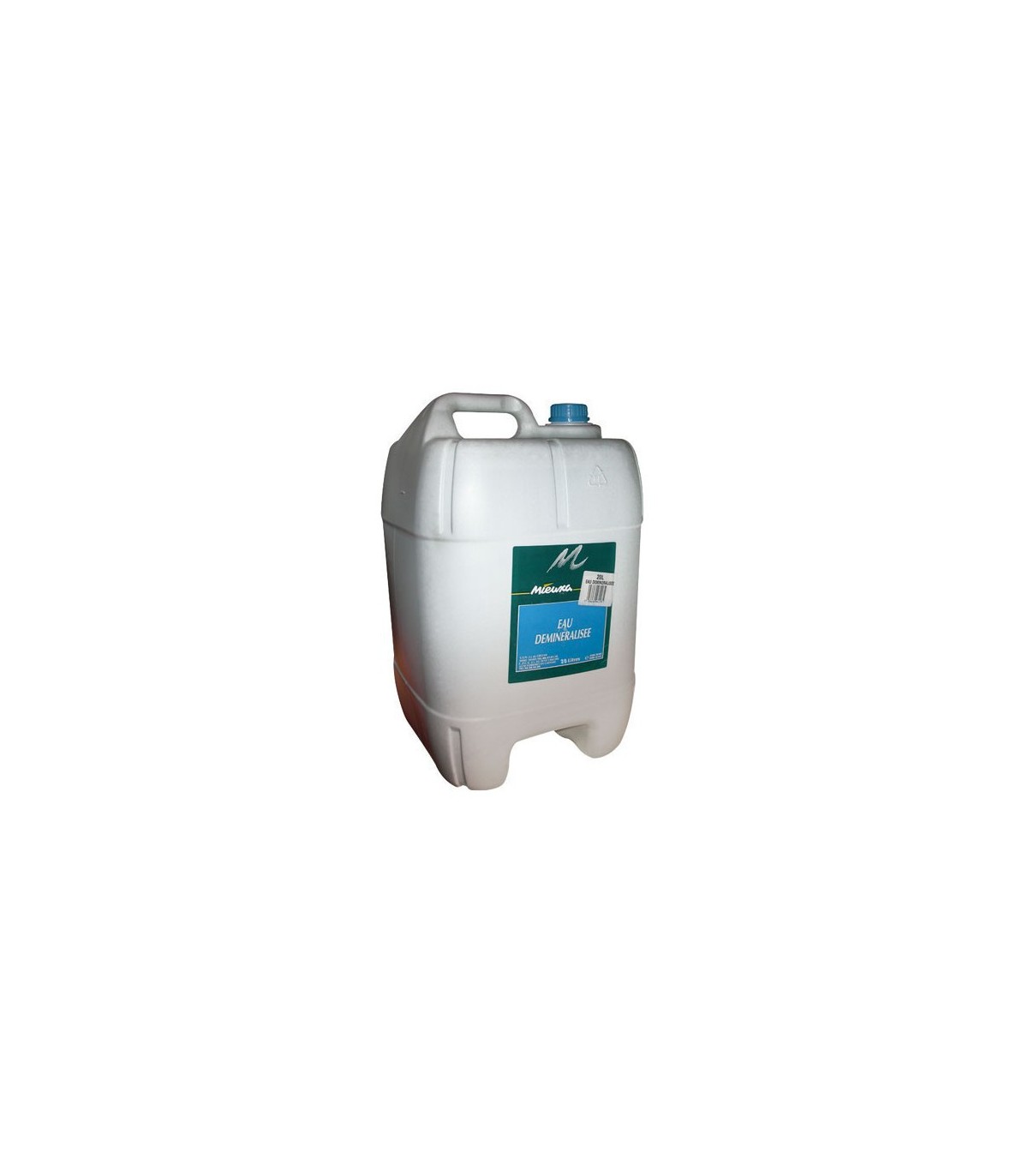 Eau déminéralisée de la marque Mieuxa. Eau non alimentaire à usage ménager.